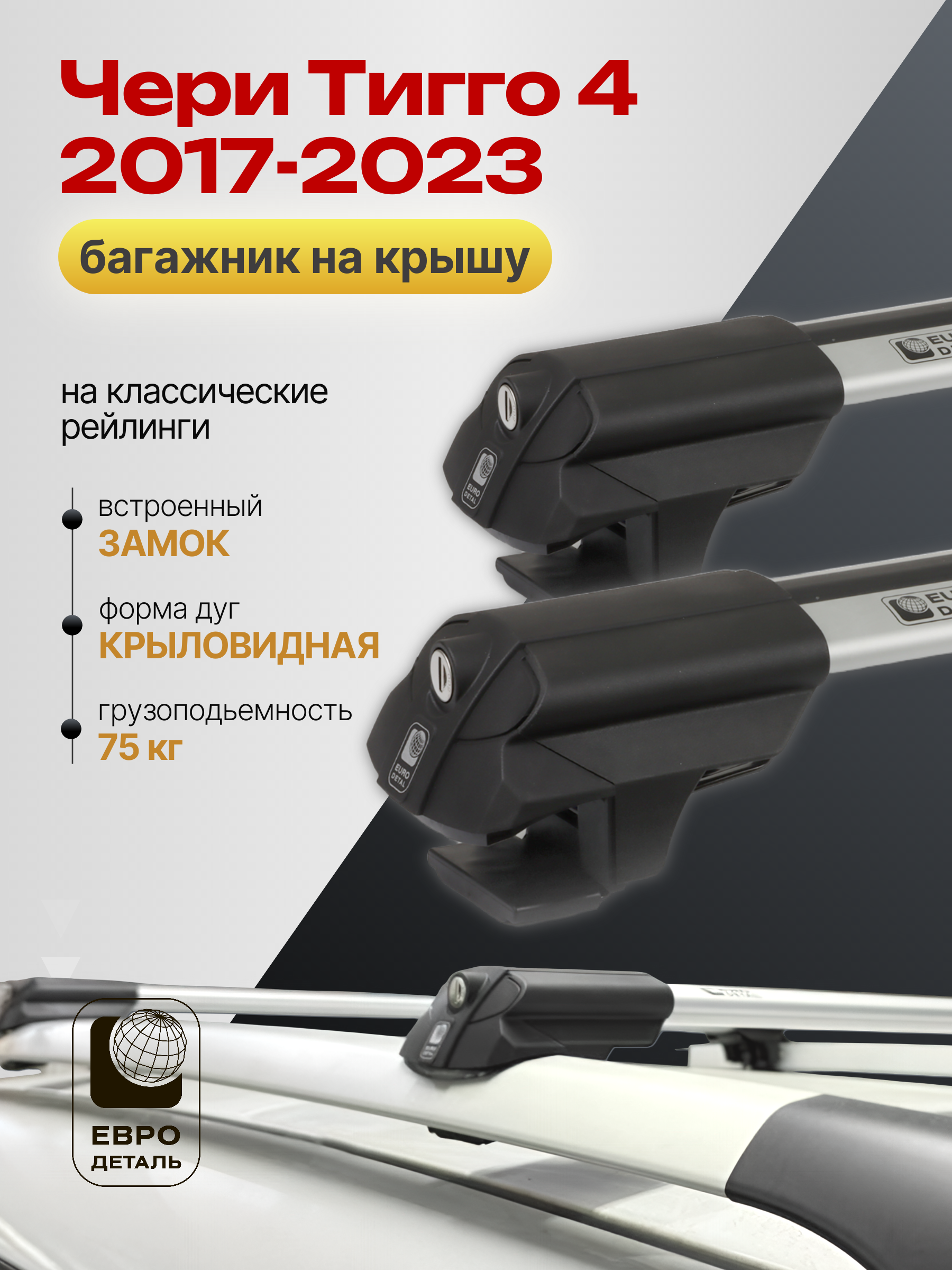 Багажник на крышу ЕвроДеталь SMART S предназначен для установки на Чери Тигго 4 2017-2023 со стандартными рейлингами.