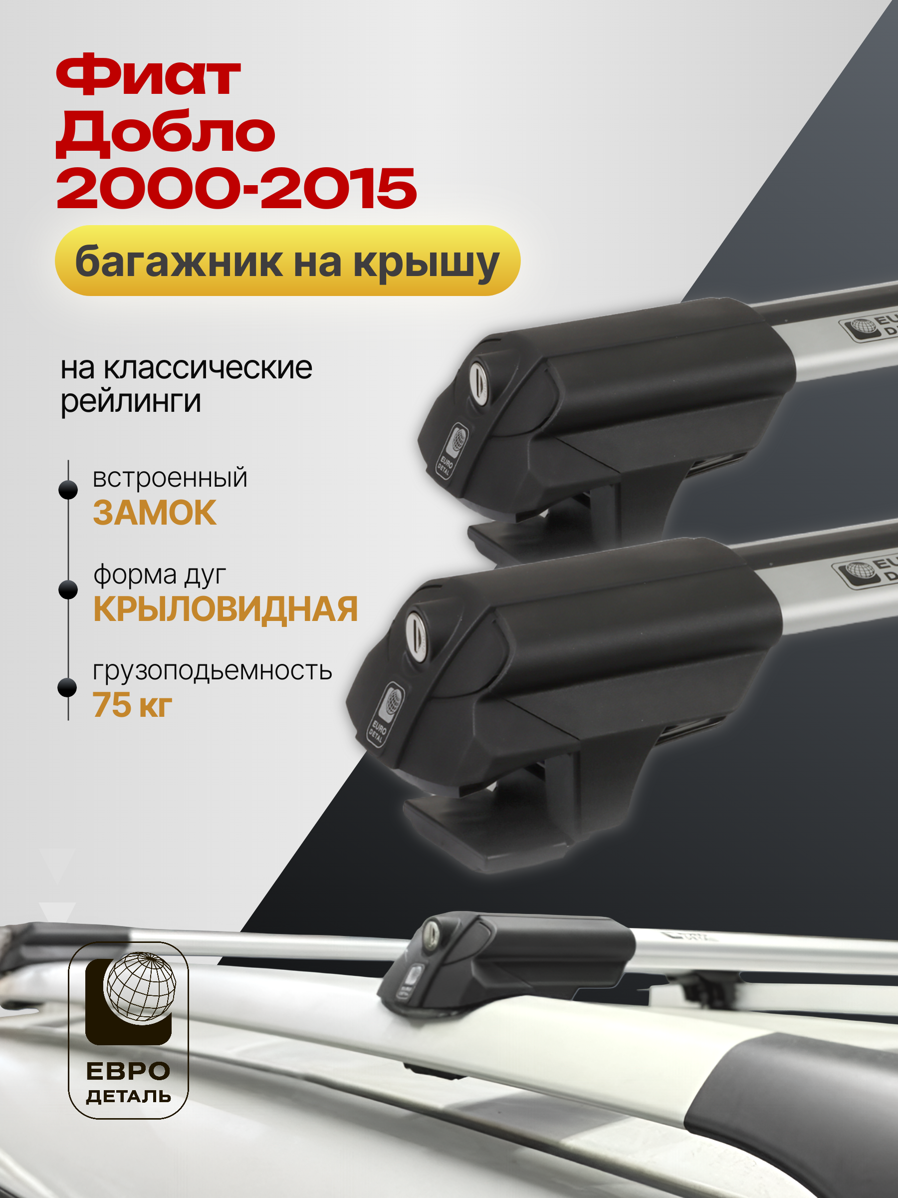 Багажник на крышу ЕвроДеталь SMART S предназначен для установки на Фиат Добло 2000-2015 со стандартными рейлингами.