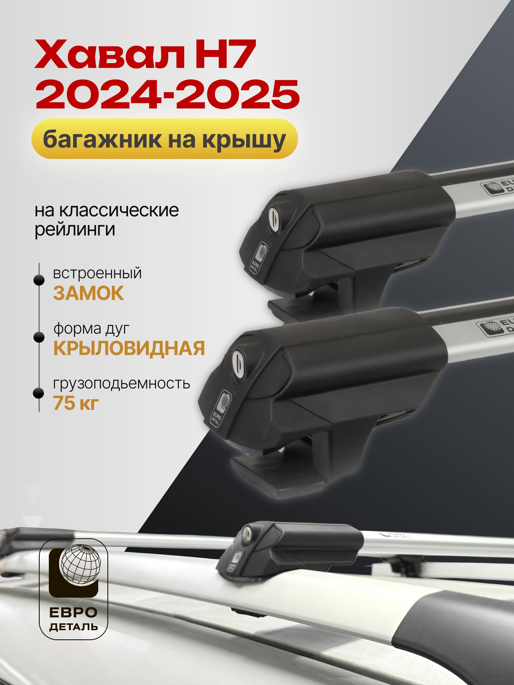 Багажник на крышу ЕвроДеталь SMART S предназначен для установки на Хавал Н7 2024-2025 со стандартными рейлингами.