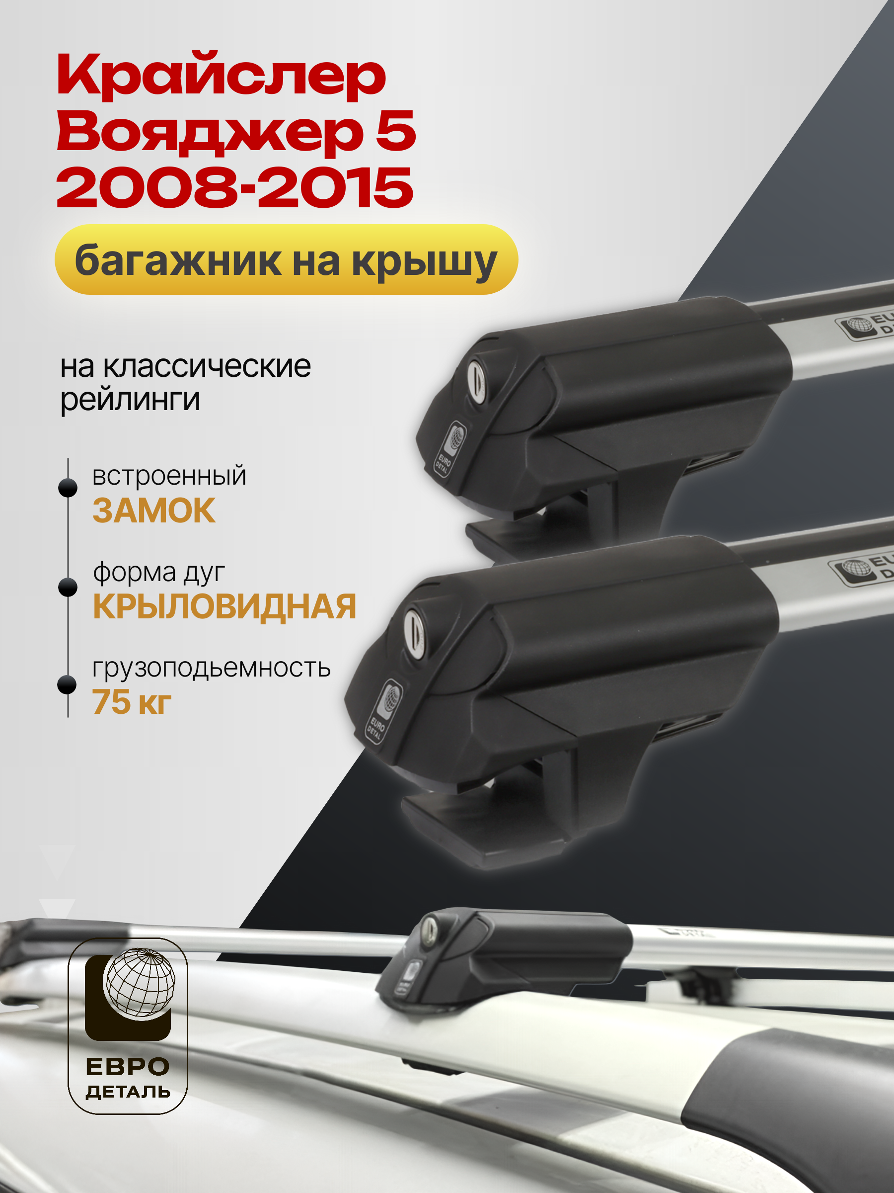 Багажник на крышу ЕвроДеталь SMART S предназначен для установки на Крайслер Вояджер/Гранд Вояджер 5 2008-2015 со стандартными рейлингами.
