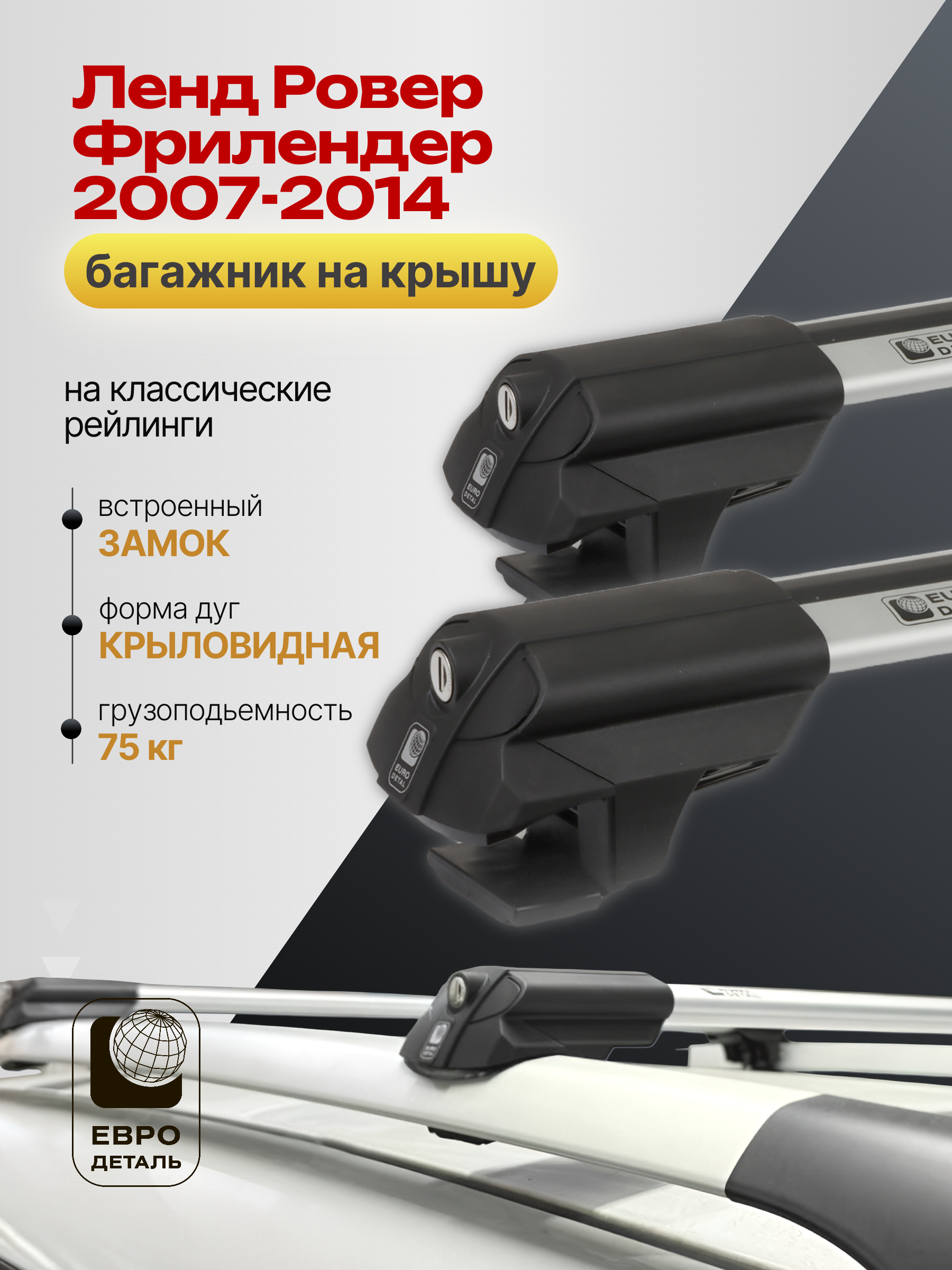 Багажник на крышу ЕвроДеталь SMART S предназначен для установки на Ленд Ровер Фрилендер 2007-2014 со стандартными рейлингами.