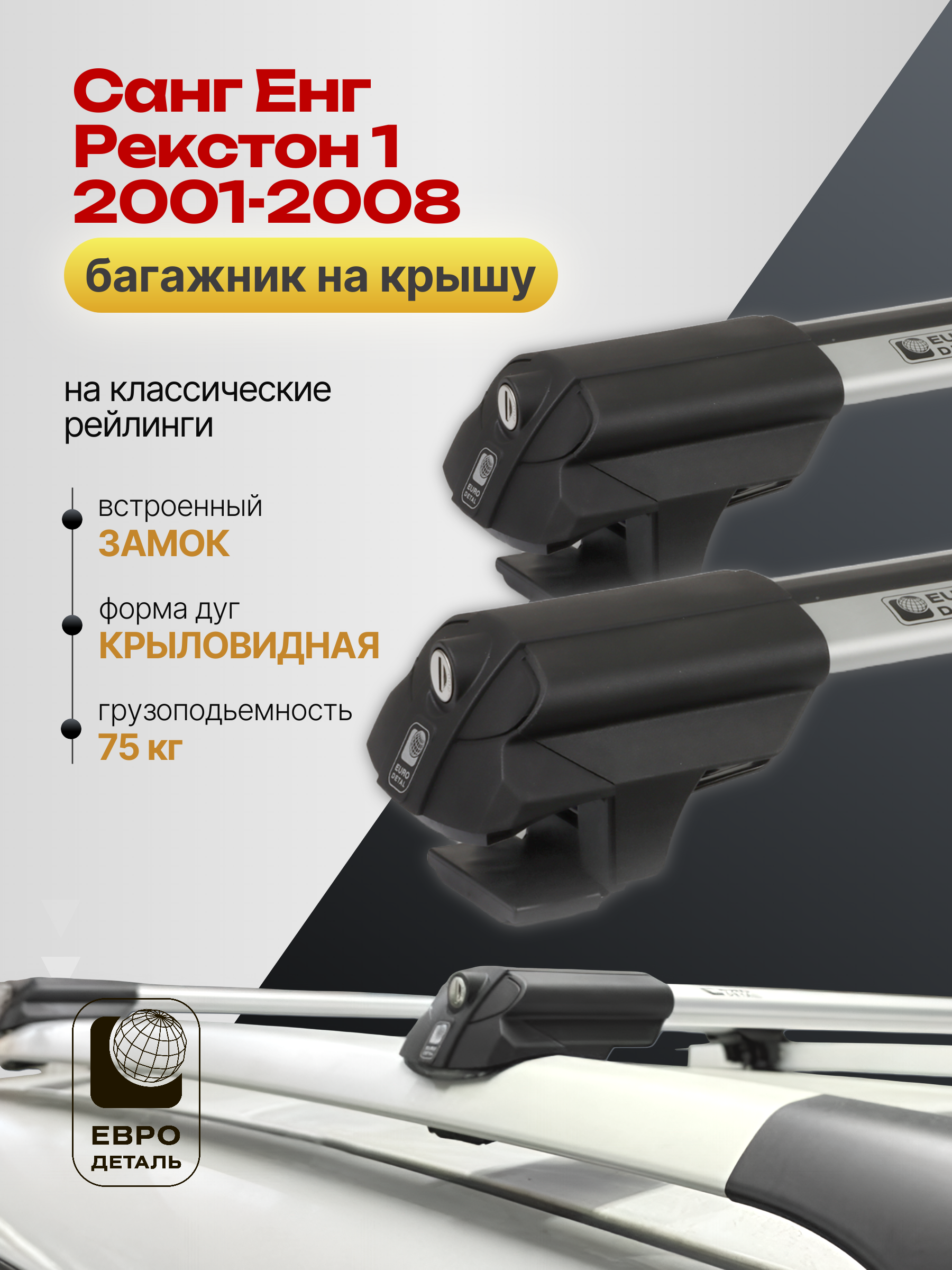 Багажник на крышу ЕвроДеталь SMART S предназначен для установки на Санг Енг Рекстон 1 2001-2008 со стандартными рейлингами.