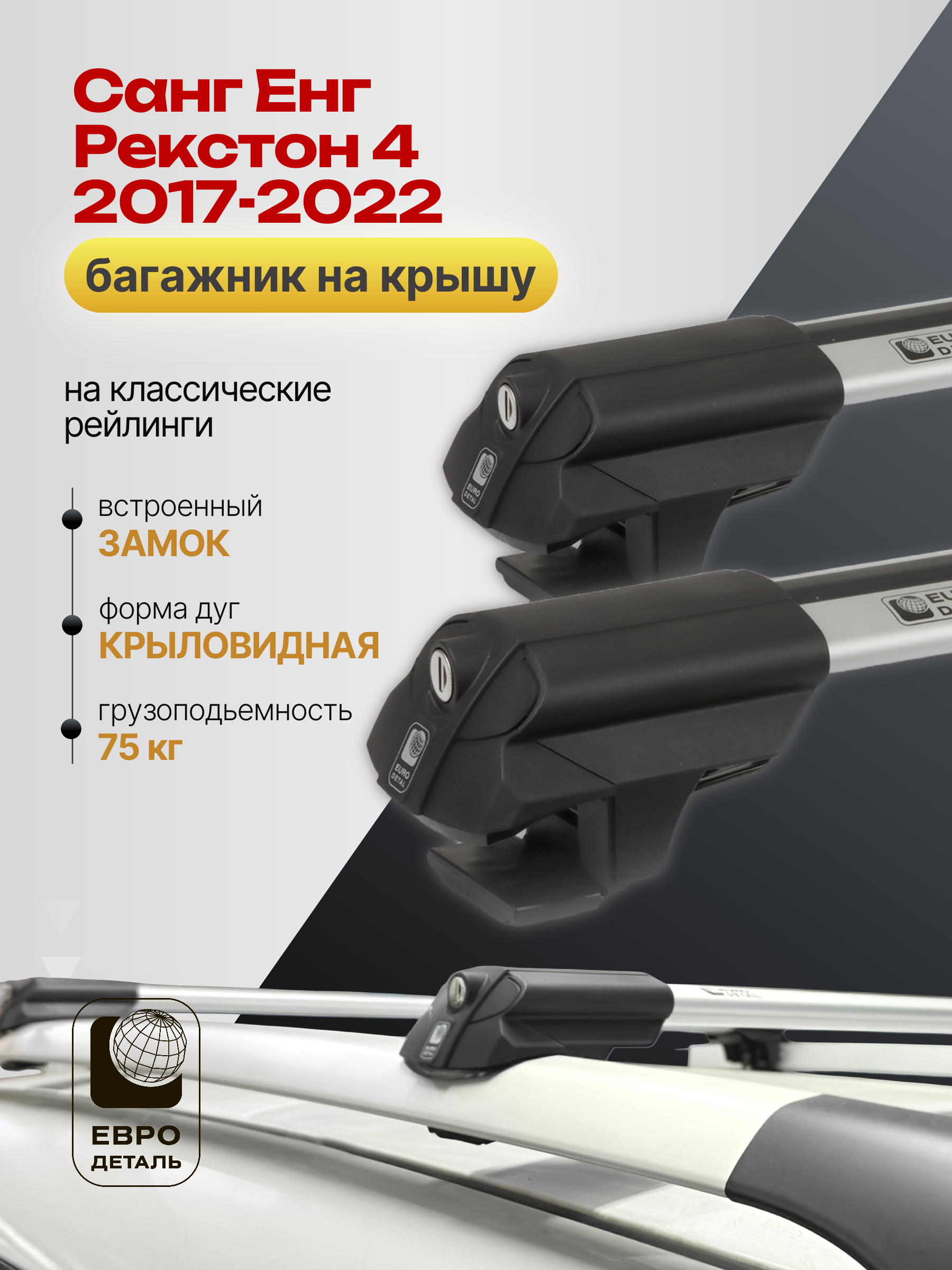 Багажник на крышу ЕвроДеталь SMART S предназначен для установки на Санг Енг Рекстон 4 2017-2022 со стандартными рейлингами.