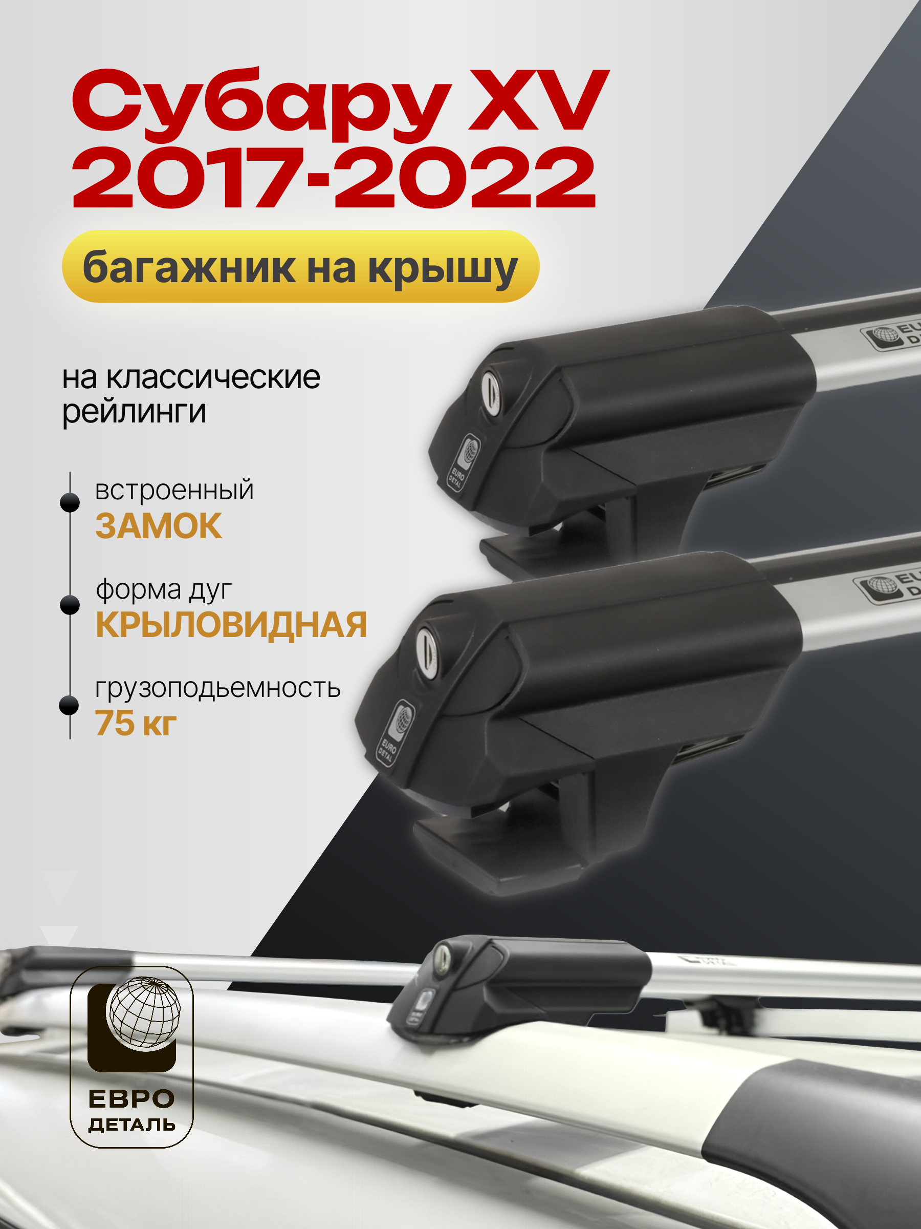 Багажник на крышу ЕвроДеталь SMART S предназначен для установки на Субару XV 2017-2022 со стандартными рейлингами.
