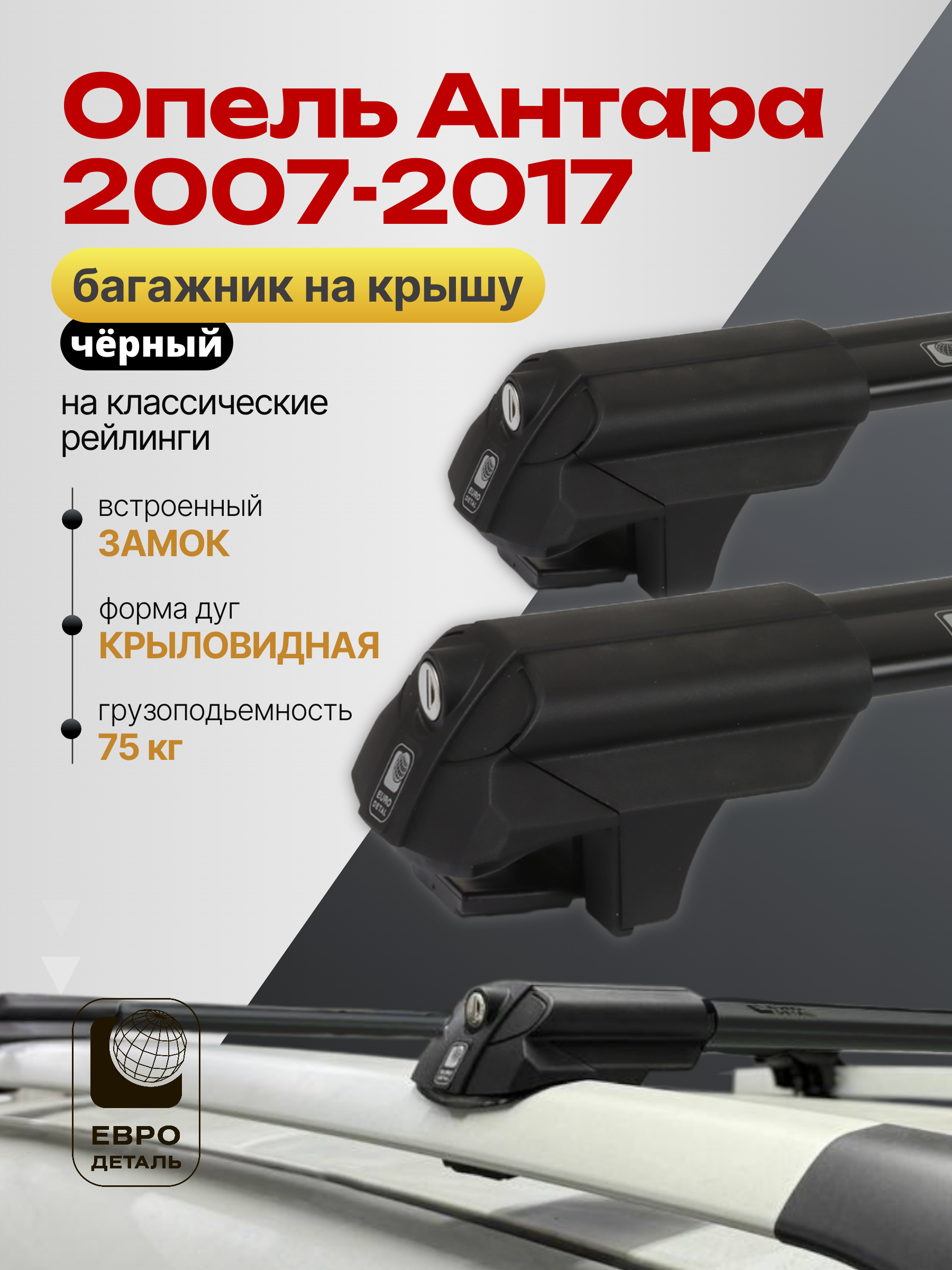 Багажник на крышу ЕвроДеталь SMART S предназначен для установки на Опель Антара 2007-2017 черный со стандартными рейлингами.