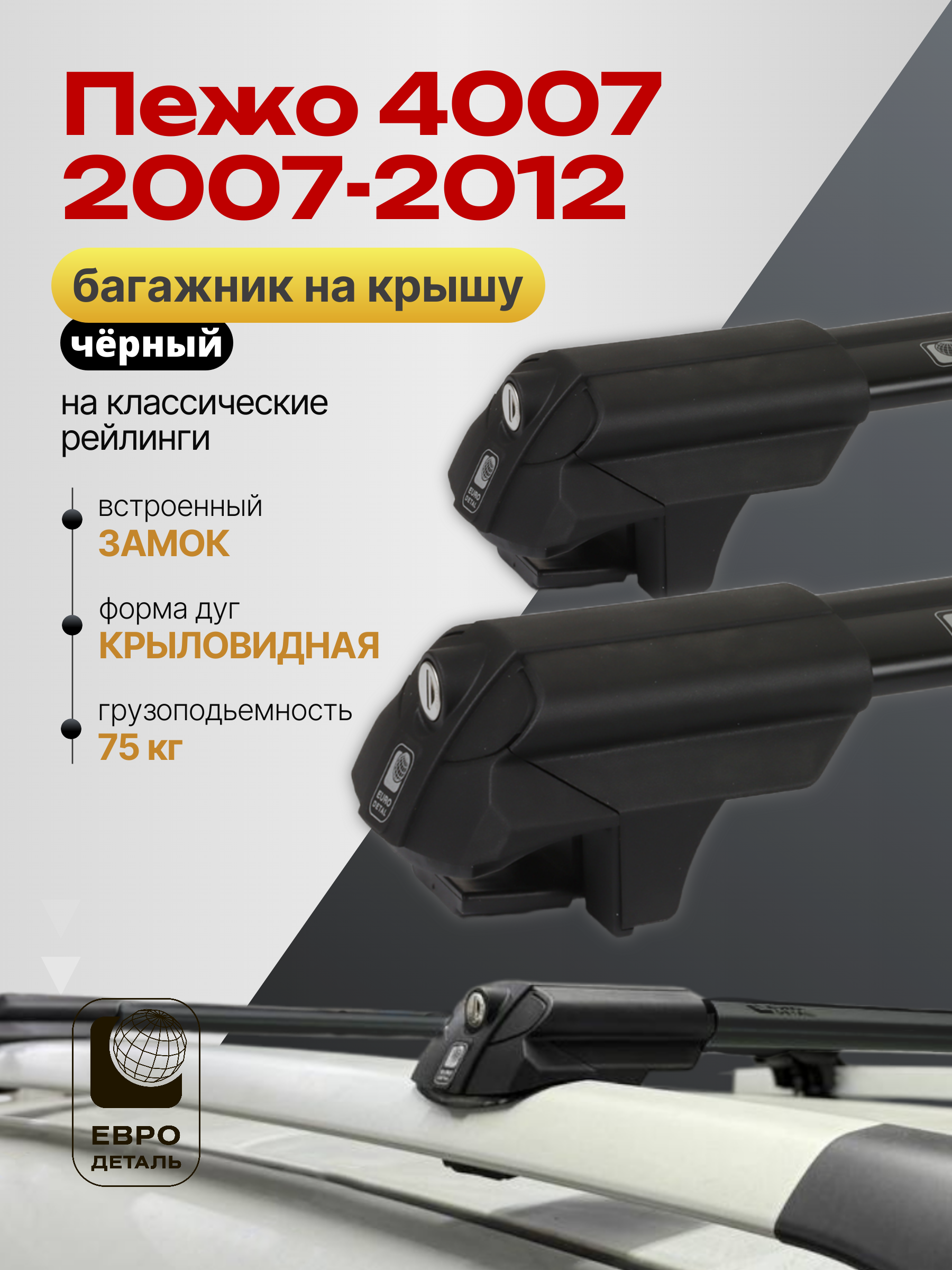 Багажник на крышу ЕвроДеталь SMART S предназначен для установки на Пежо 4007 2007-2012 черный со стандартными рейлингами.
