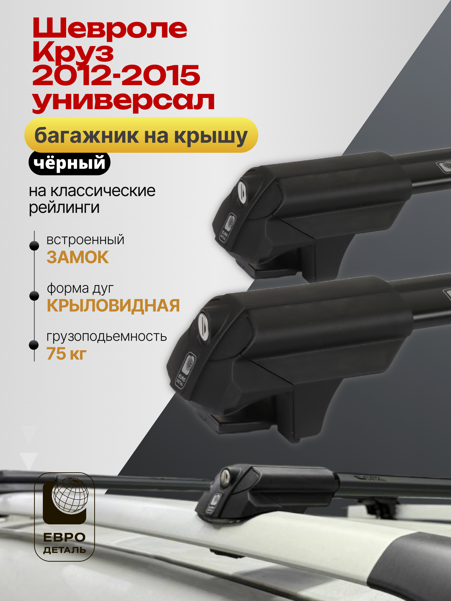 Багажник на крышу ЕвроДеталь SMART S предназначен для установки на Шевроле Круз универсал 2012-2015 черный со стандартными рейлингами.