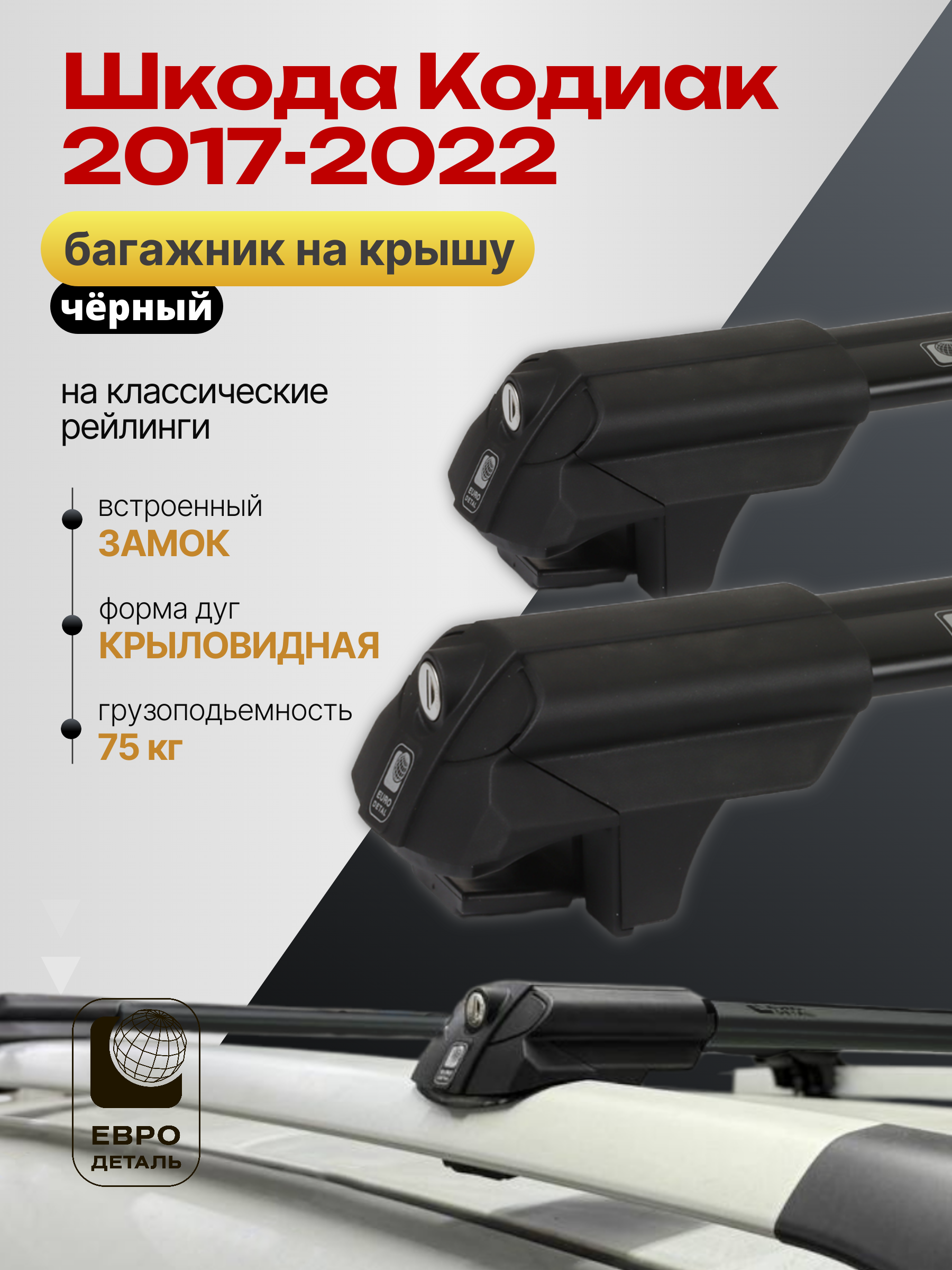 Багажник на крышу ЕвроДеталь SMART S предназначен для установки на Шкода Кодиак 2017-2022 черный со стандартными рейлингами.