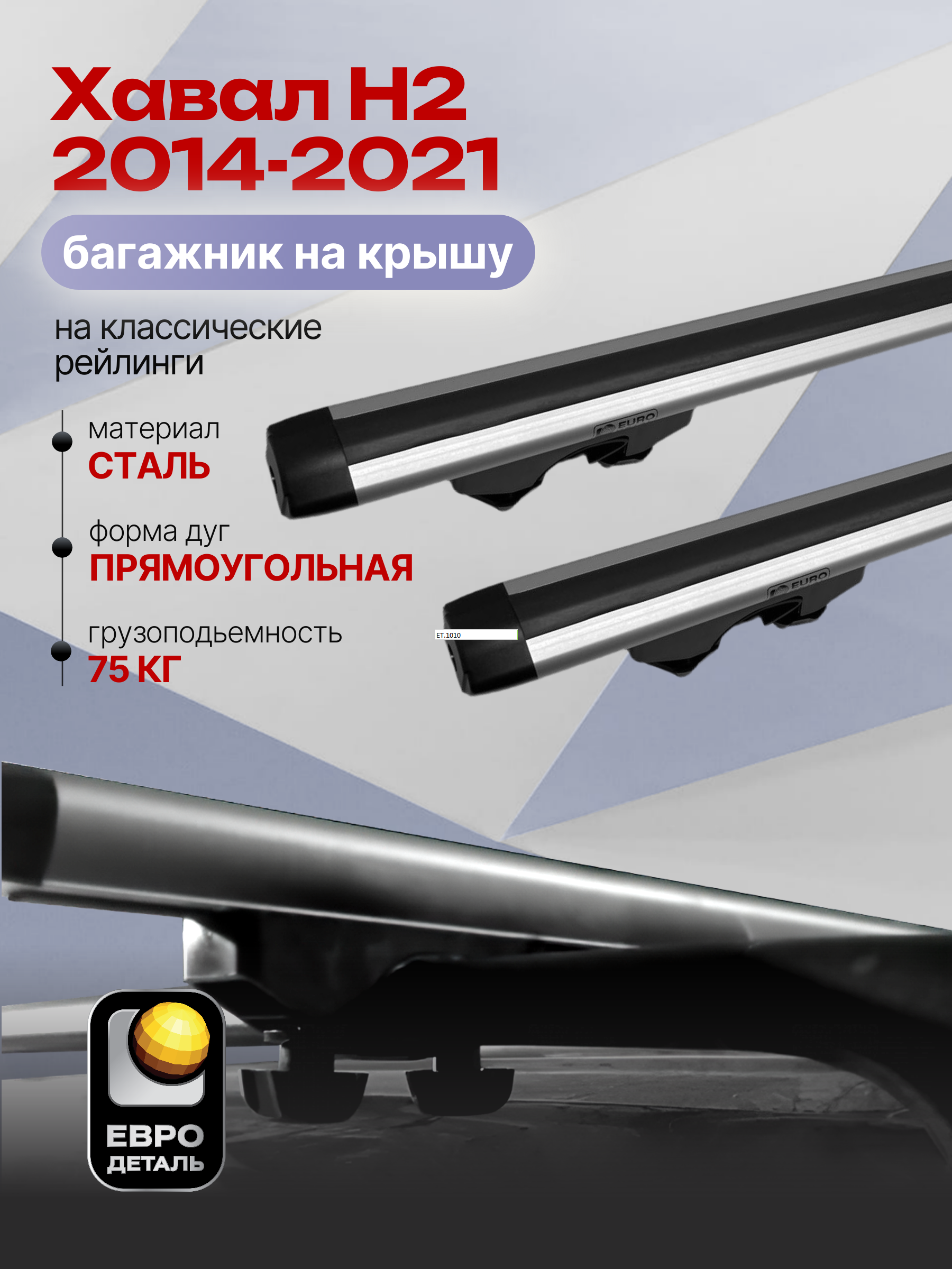 Багажник на крышу ЕвроДеталь Start предназначен для установки на Хавал Н2 2014-2021 с классическими рейлингами.
