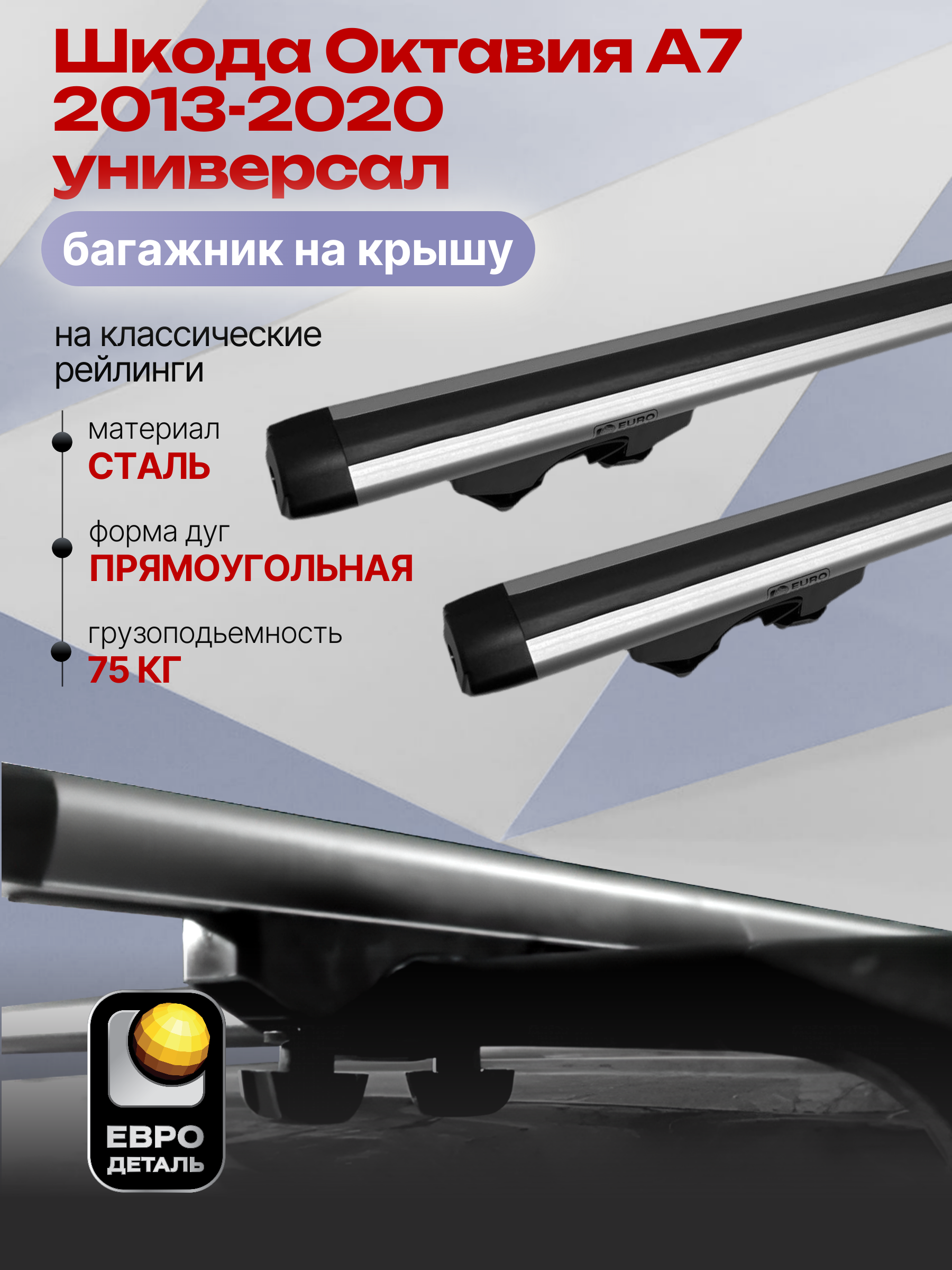 Багажник на крышу ЕвроДеталь Start предназначен для установки на Шкода Октавия А7 2013-2020 универсал с классическими рейлингами.