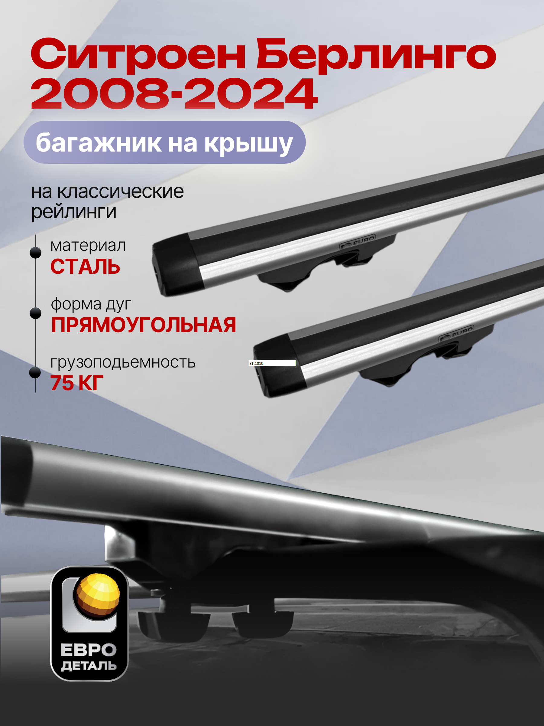 Багажник на крышу ЕвроДеталь Start предназначен для установки на Ситроен Берлинго 2008-2024 с классическими рейлингами.