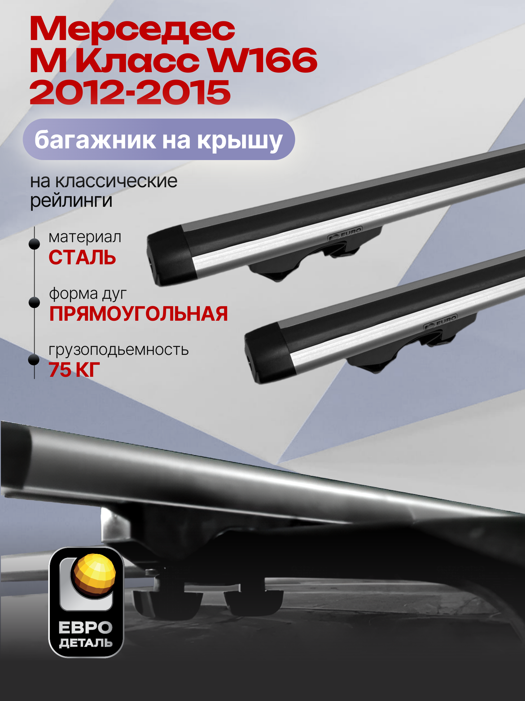 Багажник на крышу ЕвроДеталь Start предназначен для установки на Мерседес М Класс W166 2012-2015 с классическими рейлингами.