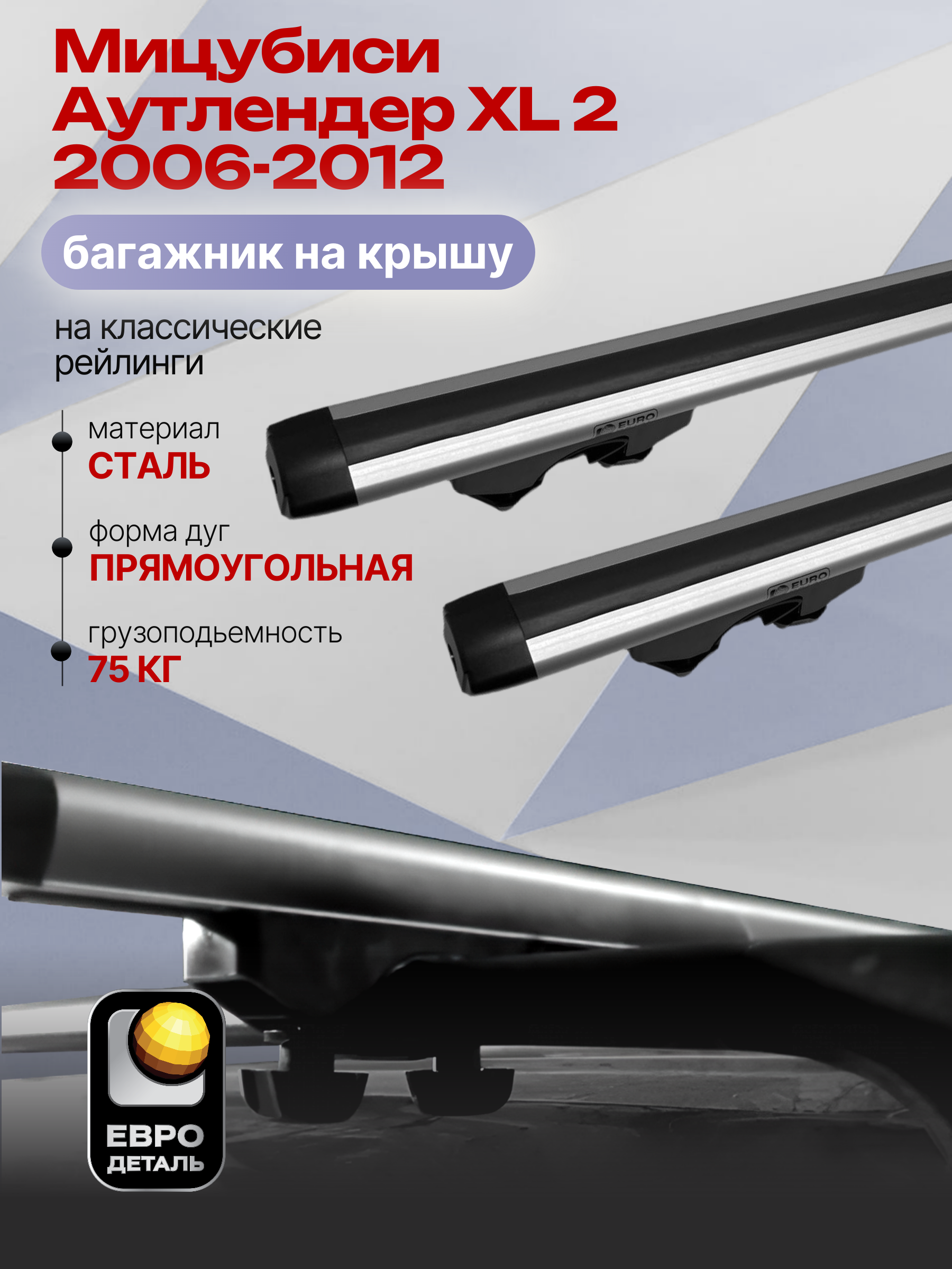Багажник на крышу ЕвроДеталь Start предназначен для установки на Мицубиси Аутлендер XL 2 2006-2012 с классическими рейлингами.