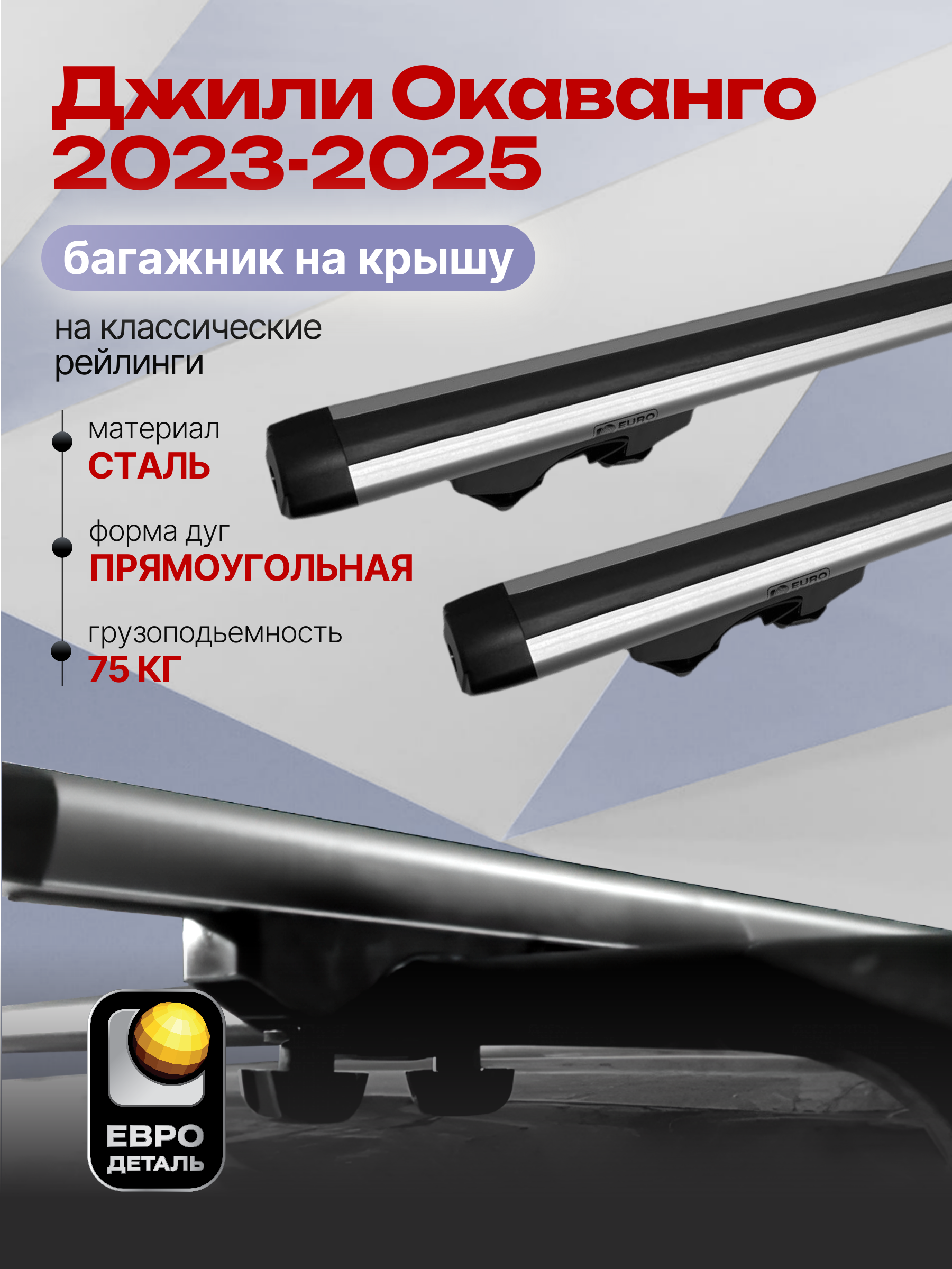 Багажник на крышу ЕвроДеталь Start предназначен для установки на Джили Окаванго 2023-2025 с классическими рейлингами.