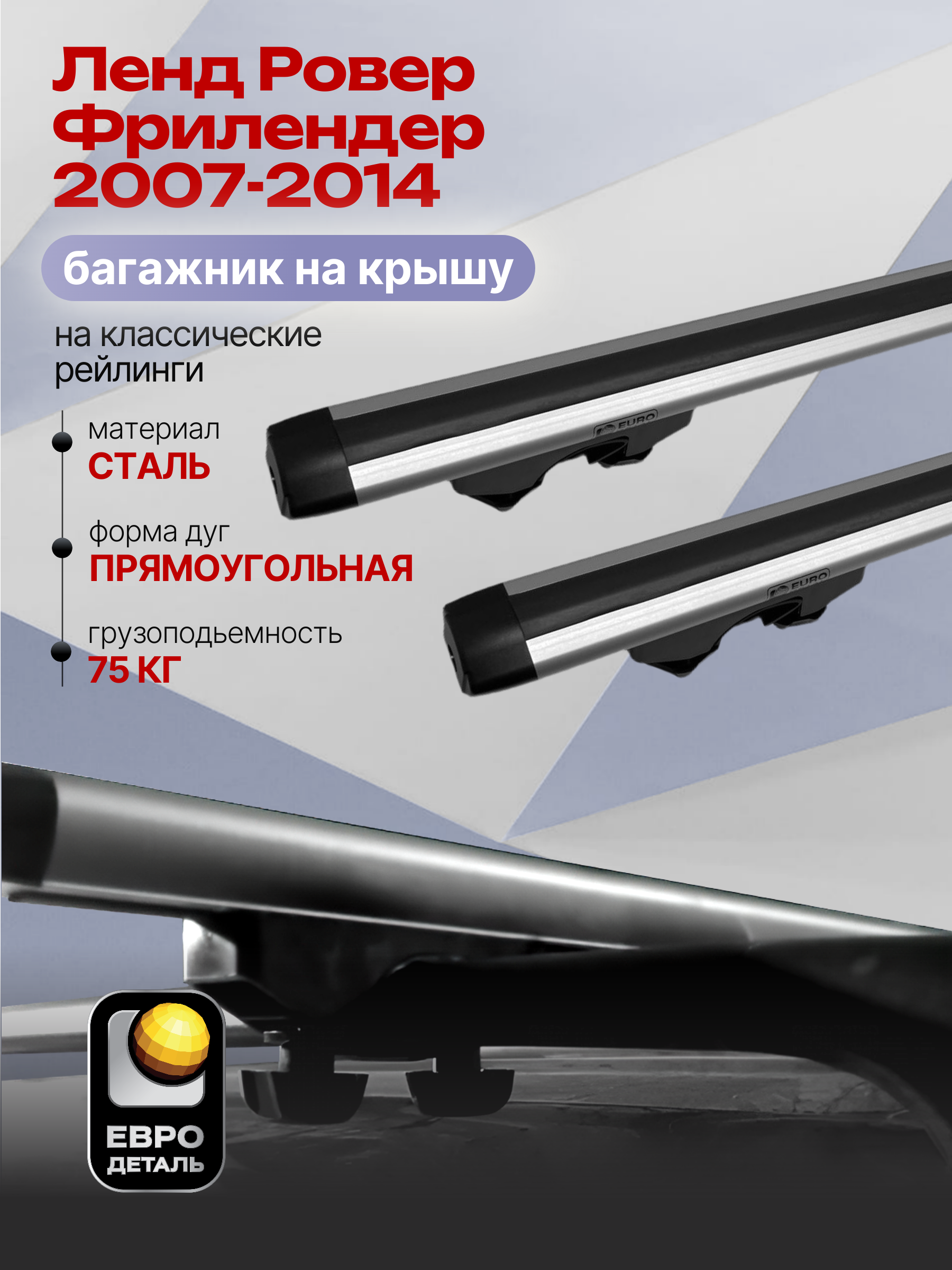 Багажник на крышу ЕвроДеталь Start предназначен для установки на Ленд Ровер Фрилендер 2007-2014 с классическими рейлингами.