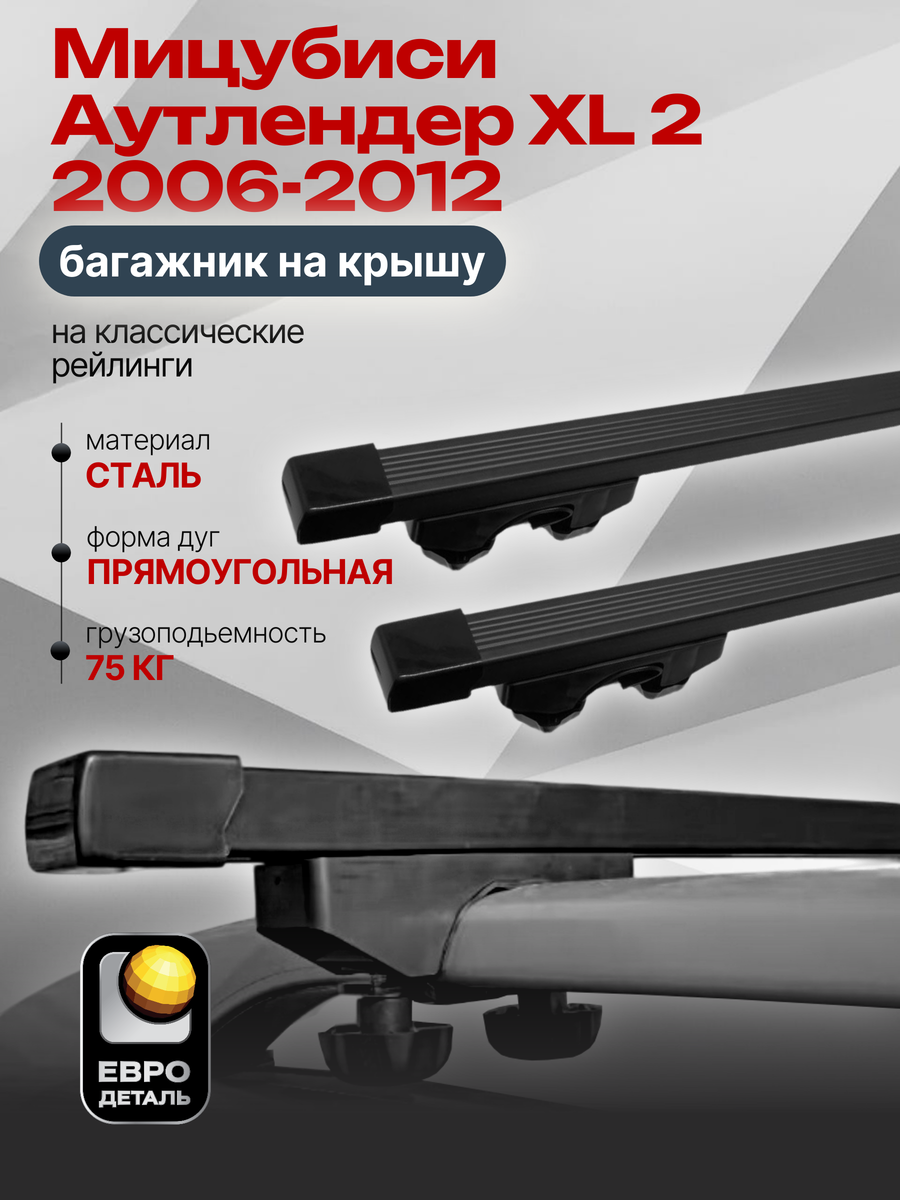 Багажник на крышу ЕвроДеталь Start предназначен для установки на Мицубиси Аутлендер XL 2 2006-2012, черный с классическими рейлингами.