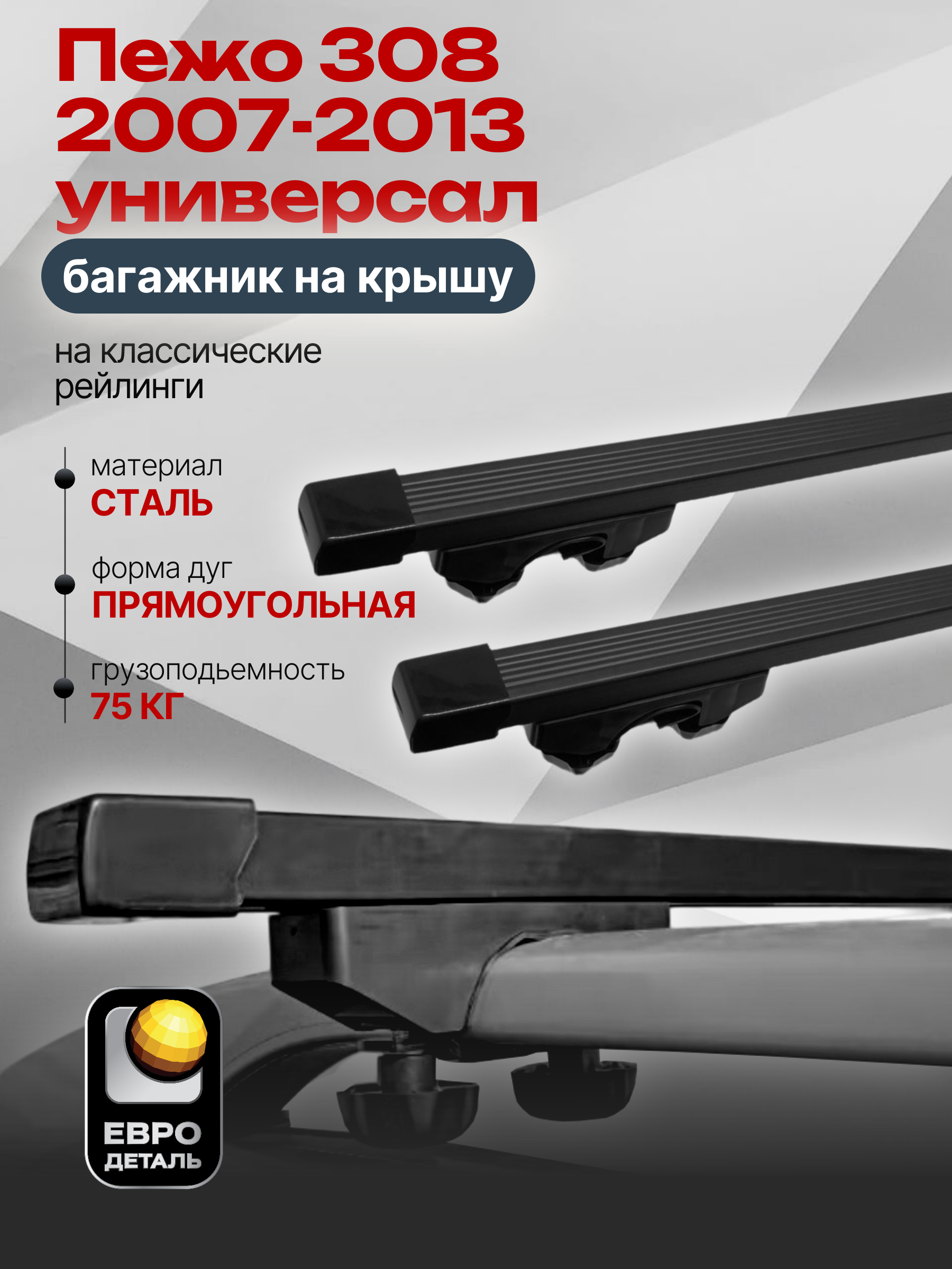 Багажник на крышу ЕвроДеталь Start предназначен для установки на Пежо 308 2007-2013 универсал, черный с классическими рейлингами.