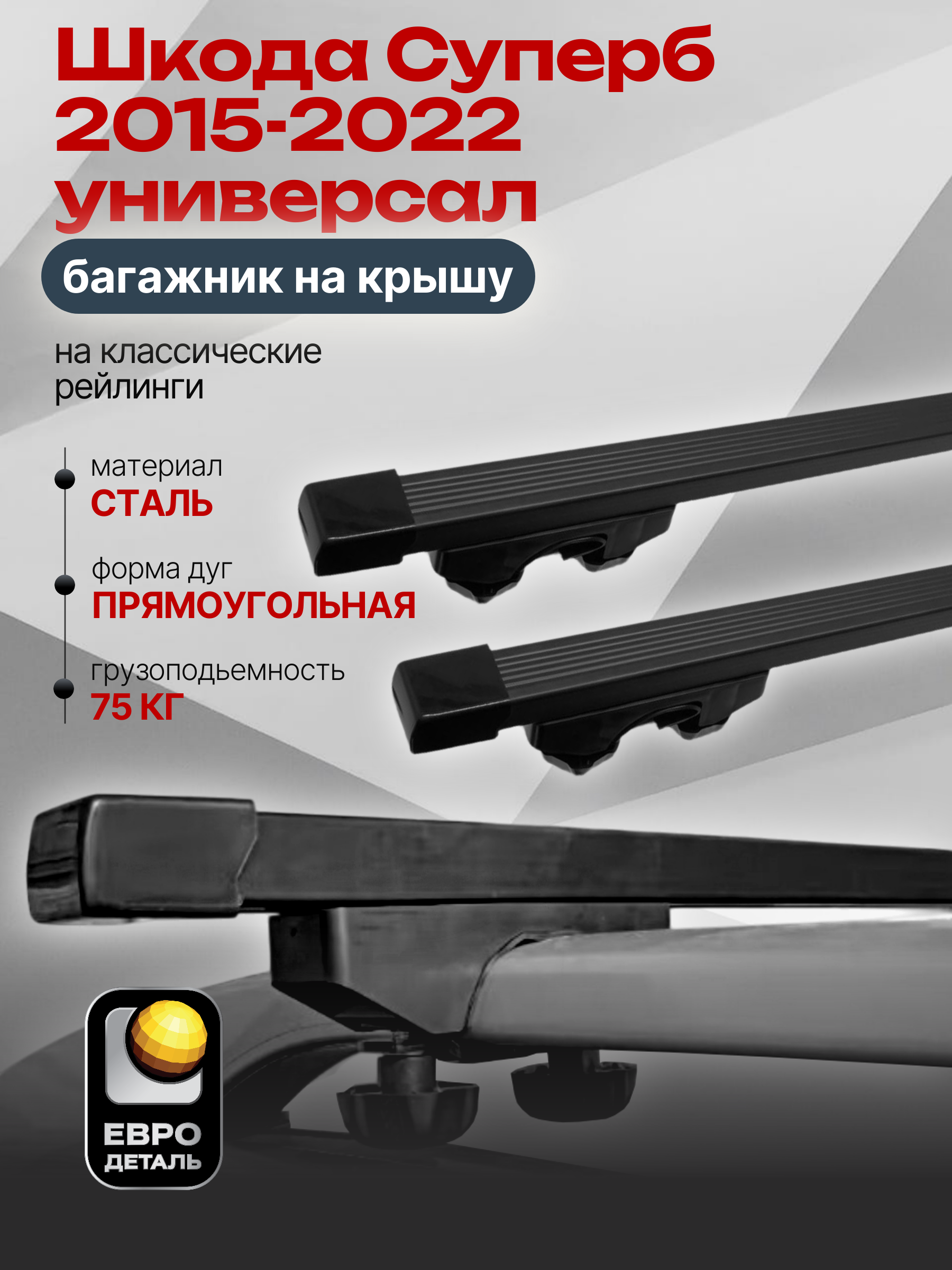 Багажник на крышу ЕвроДеталь Start предназначен для установки на Шкода Суперб 2015-2022 универсал, черный с классическими рейлингами.