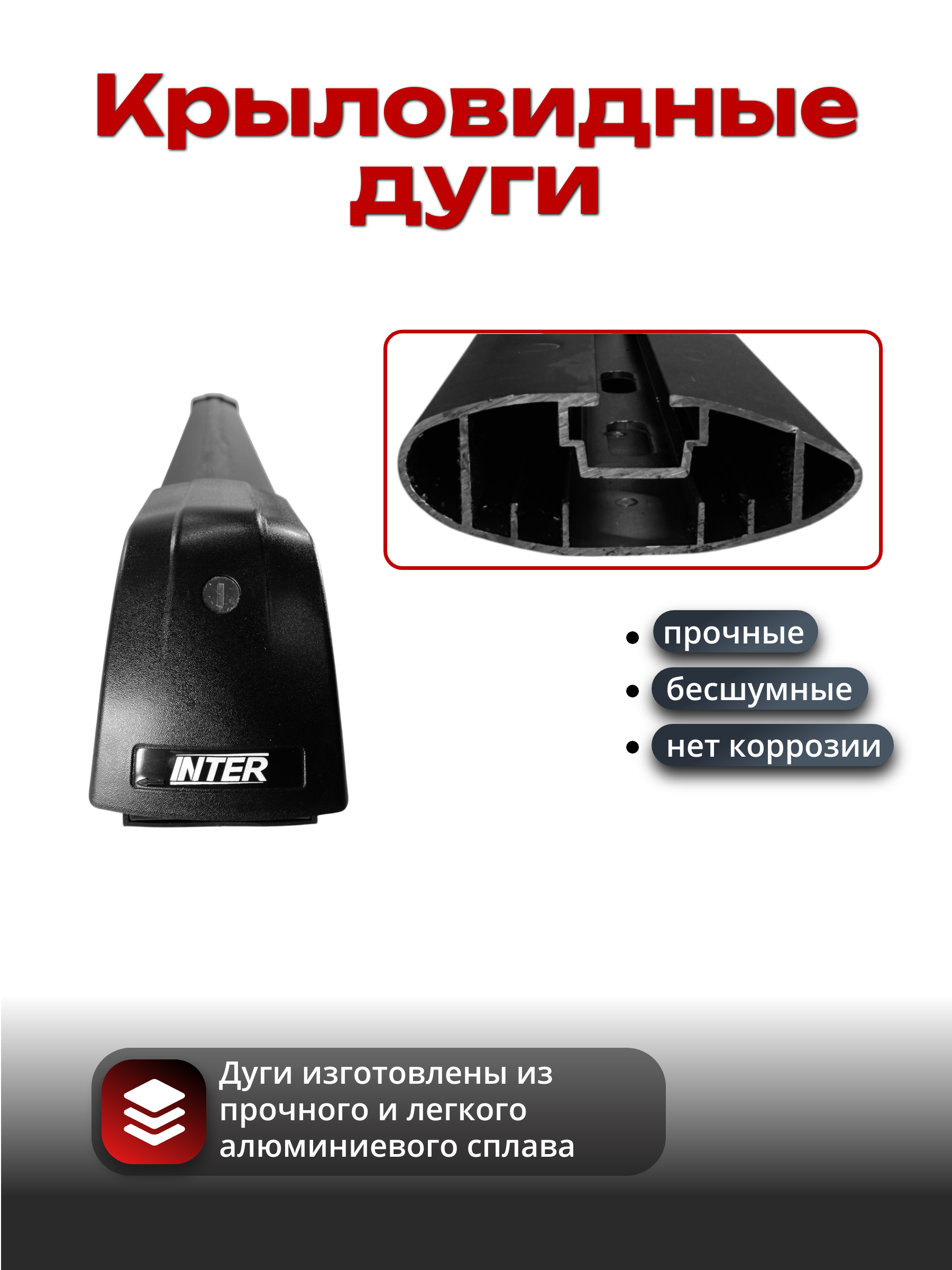 В комплекте 2 дуги, 4 опоры, крепежный комплект, инструкция по установке.
