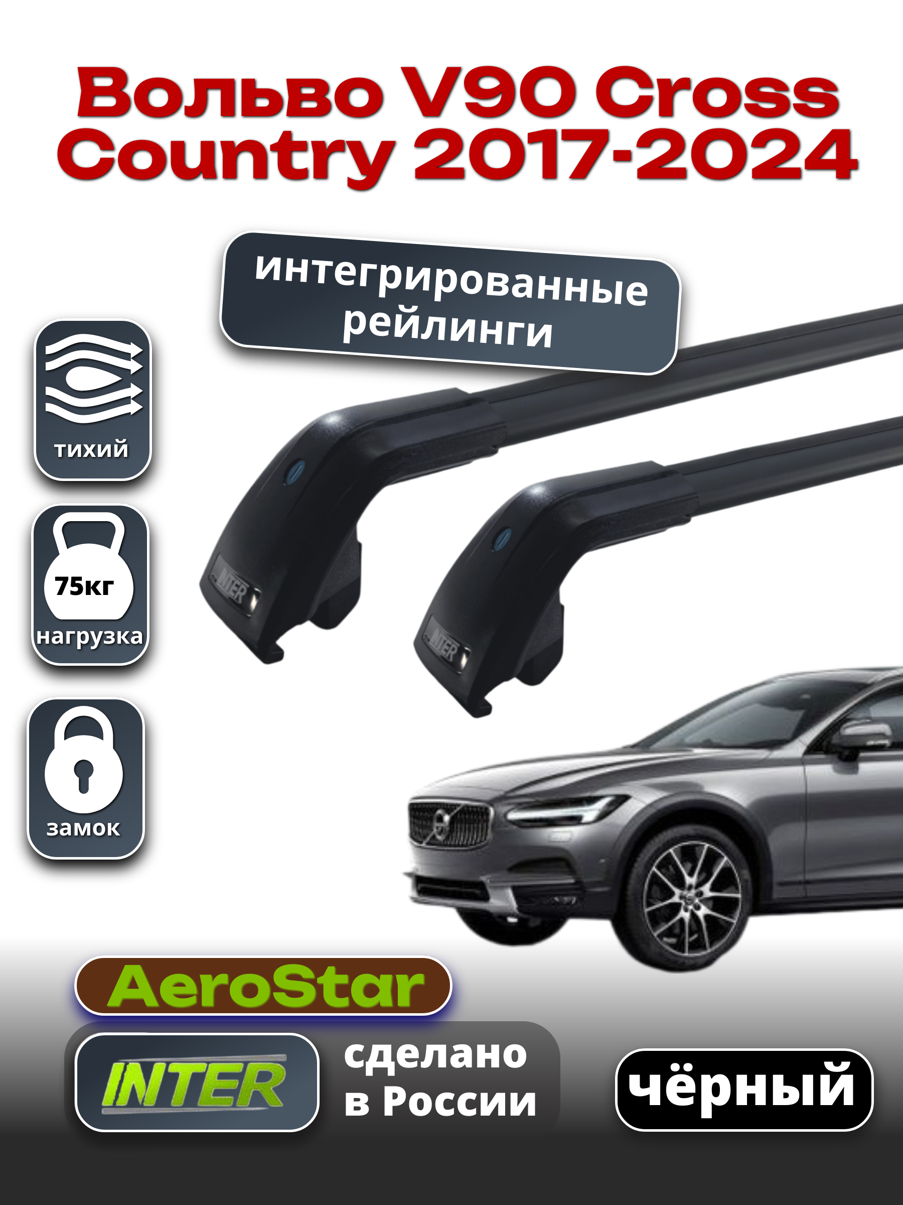 Багажник Inter AeroStar на интегрированные рейлинги предназначен для установки на автомобили с рейлингами, не имеющими просвет между крышей и дугами.