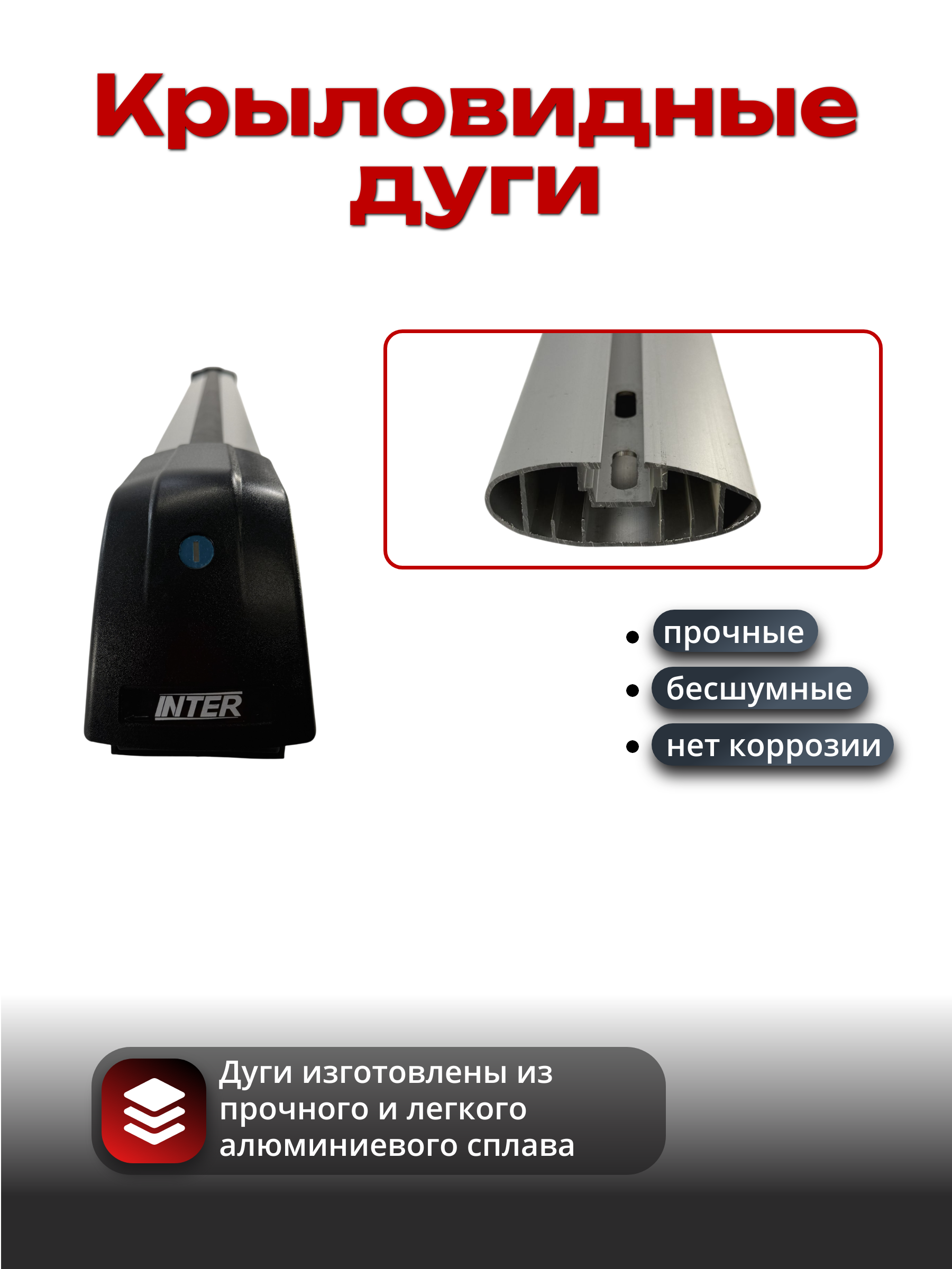 В комплекте 2 дуги, 4 опоры, крепежный комплект, инструкция по установке.