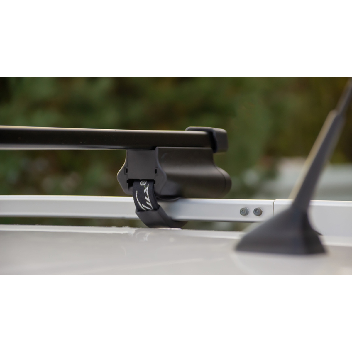 Конструкция багажника LUX БЭЛТ с прямоугольными дугами состоит из двух поперечных дуг, которые монтируются на крыше автомобиля на специальных опорах.