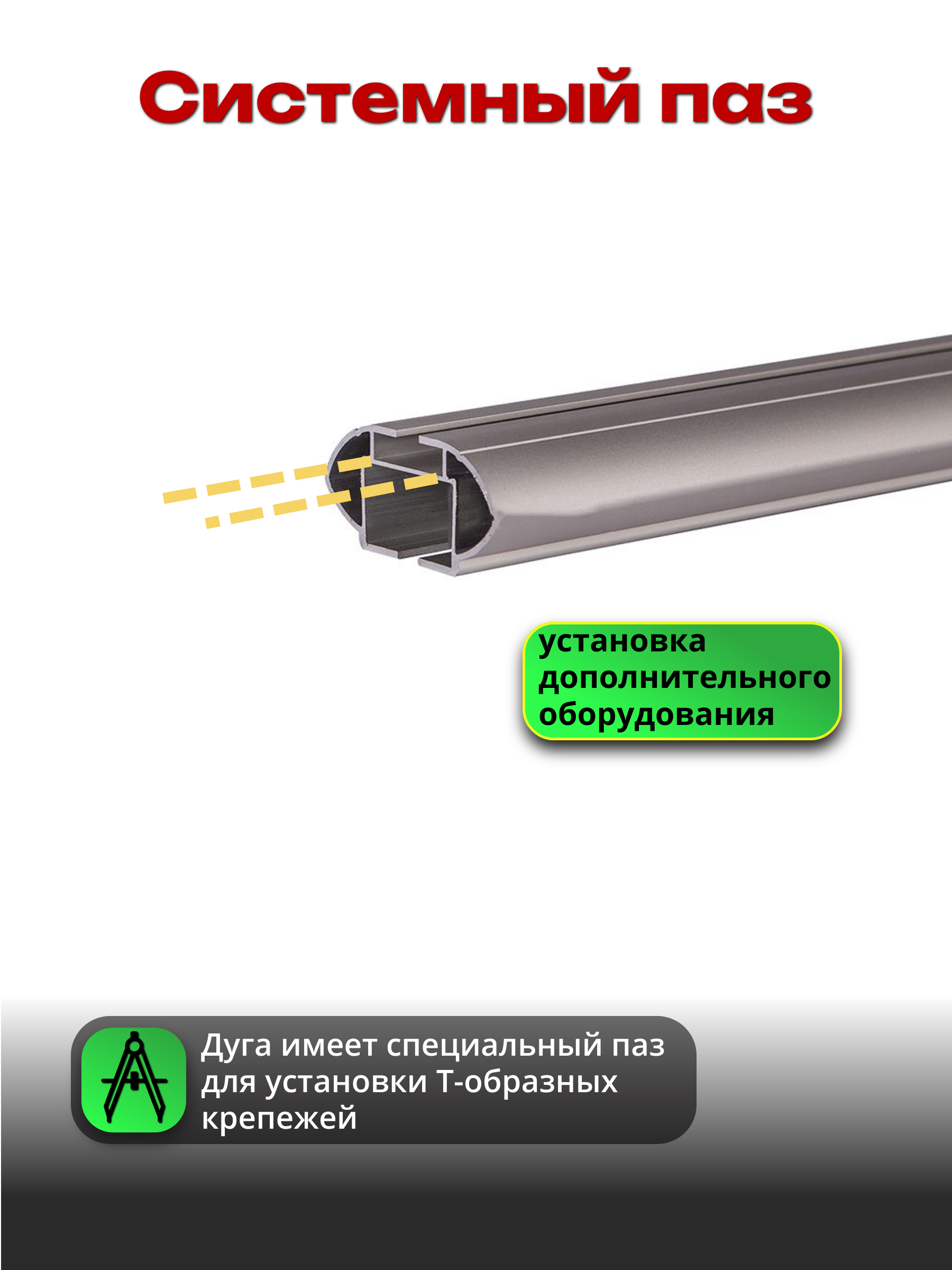 Поперечные перекладины изготовлены из прочного алюминиевого сплава, внутри профиль дуг имеет перемычки для жестки. Опоры прижимаются к крыше через резиновые подкладки, предохраняющие поверхность от механических повреждений при использовании багажника и обеспечивающие идеальное прилегание.