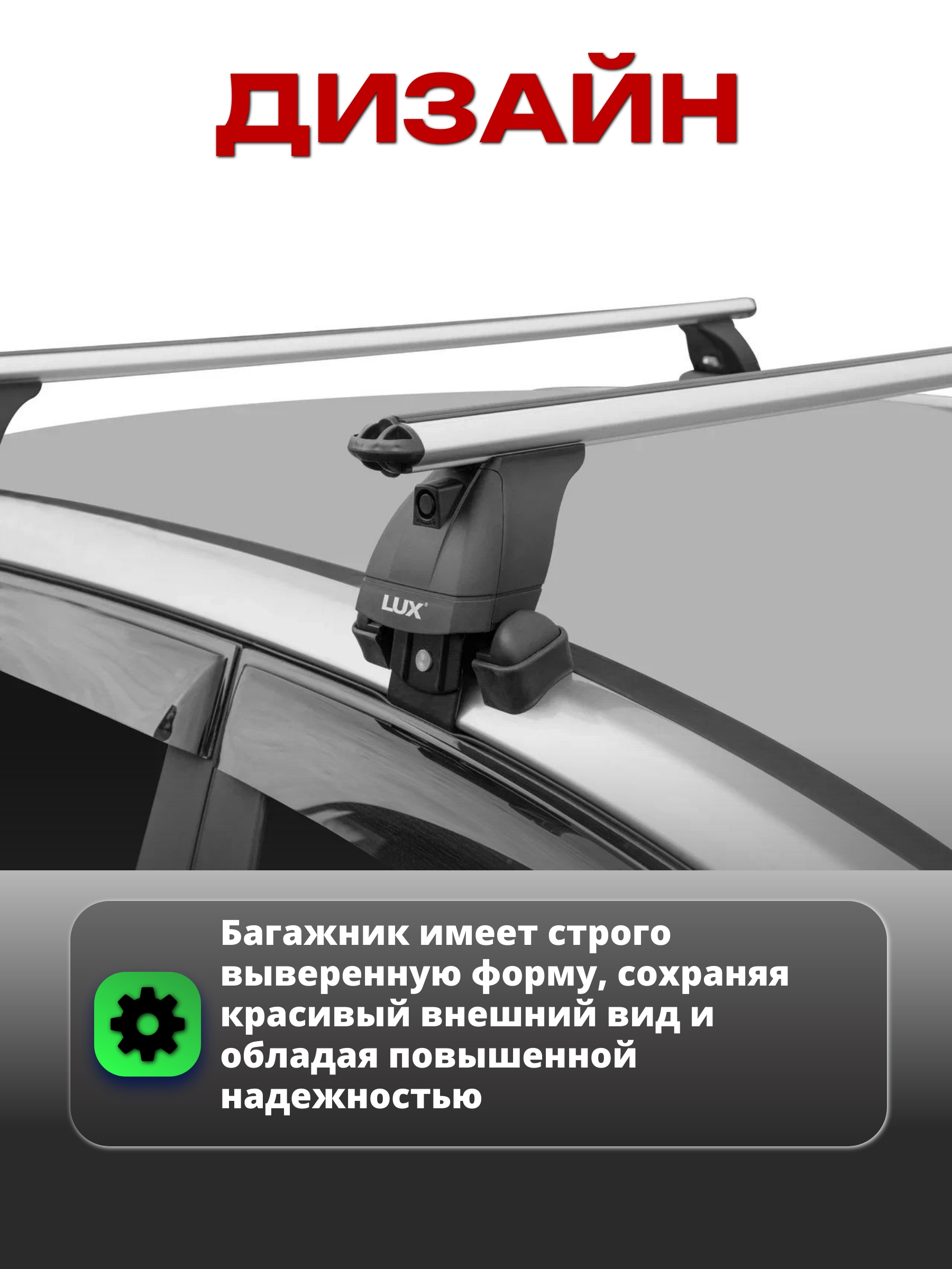 Надежная багажная система LUX (Люкс) хорошо приспособлена для перевозки любых грузов, весом не превышающим разрешенную нагрузку на крышу вашего автомобиля (см. инструкцию к автомобилю) и установки дополнительных автоаксессуаров: автобоксы, крепления для велосипедов и прочие.