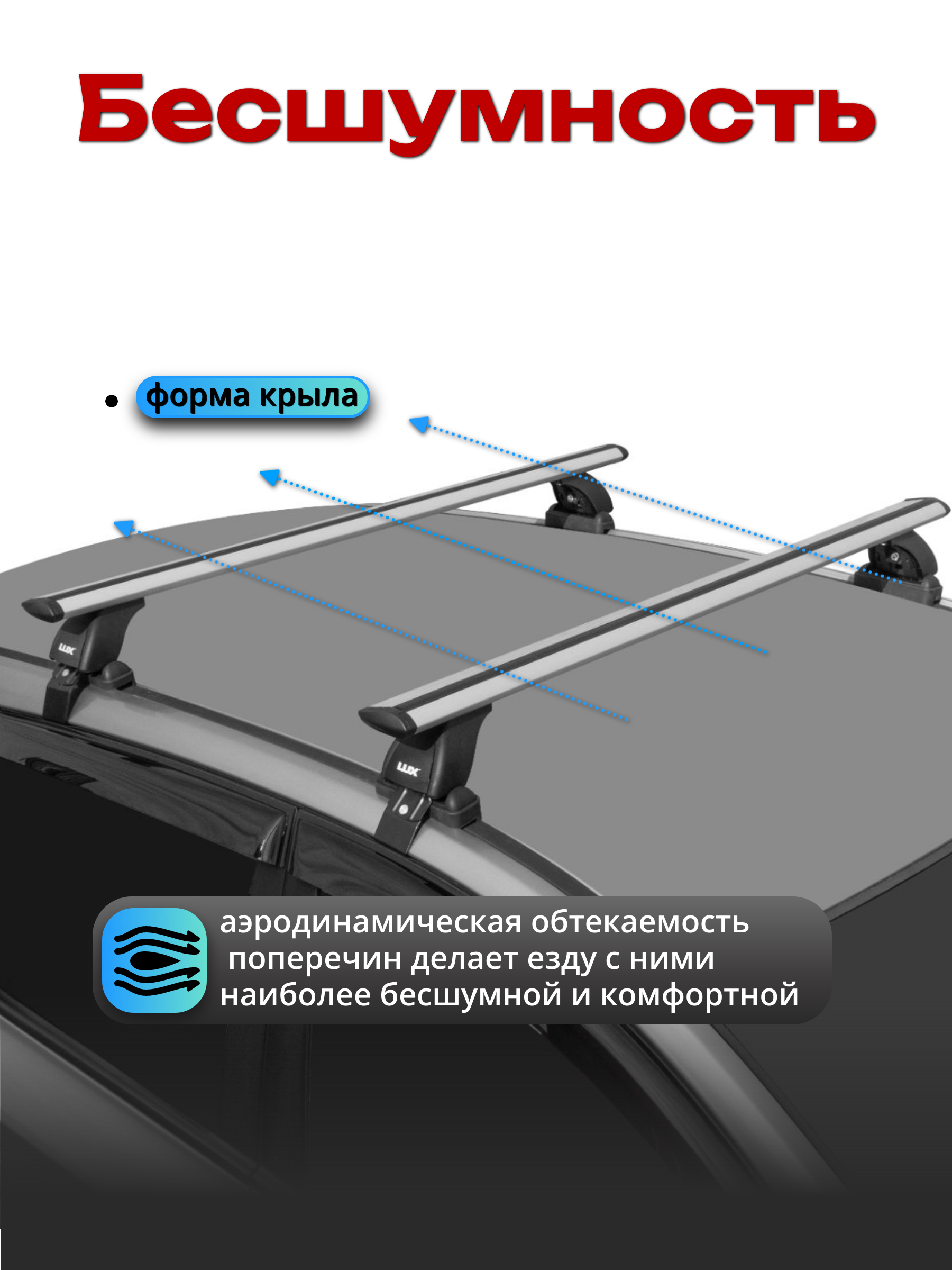 Багажник LUX дуги аэро-тревел имеет поперечные дуги крыловидной формы, обладающие наилучшей аэродинамикой. Шум сведен к минимуму. Ширина поперечин 82 мм.