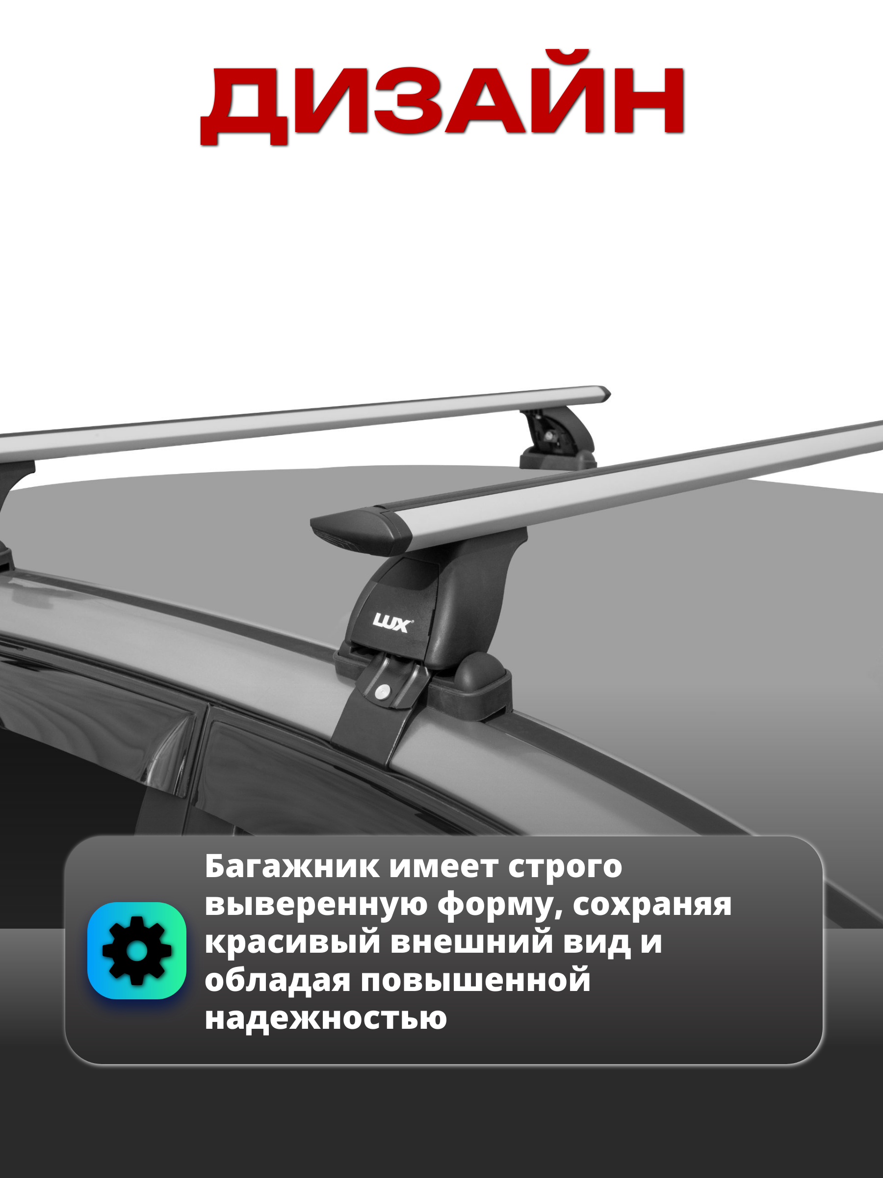 Конструкция багажника LUX состоит из двух поперечных дуг крыловидной формы, которые монтируются на крыше автомобиля на специальных опорах.