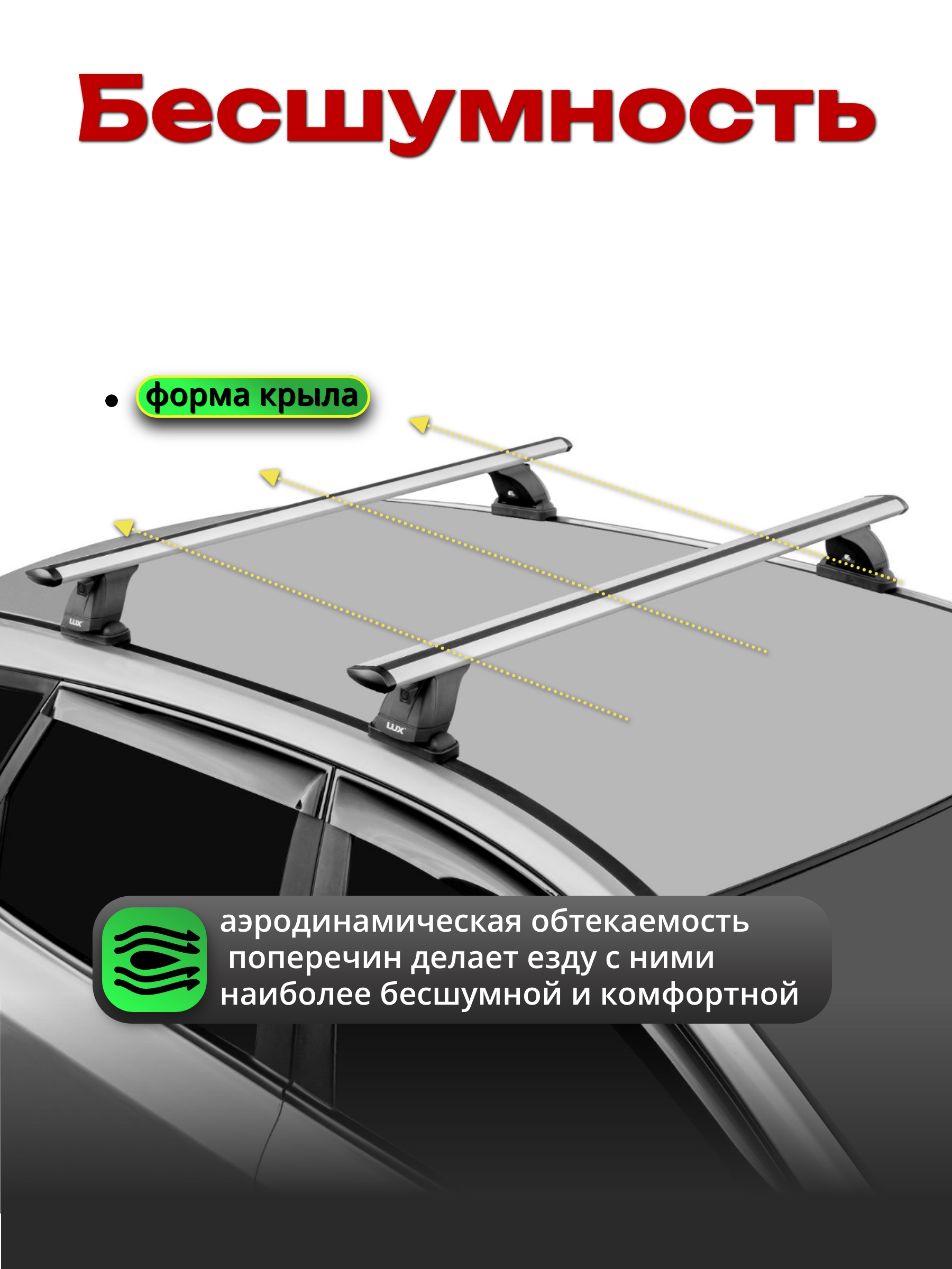 Багажник LUX дуги аэро-тревел имеет поперечные дуги крыловидной формы, обладающие наилучшей аэродинамикой. Шум сведен к минимуму. Ширина поперечин 82 мм.