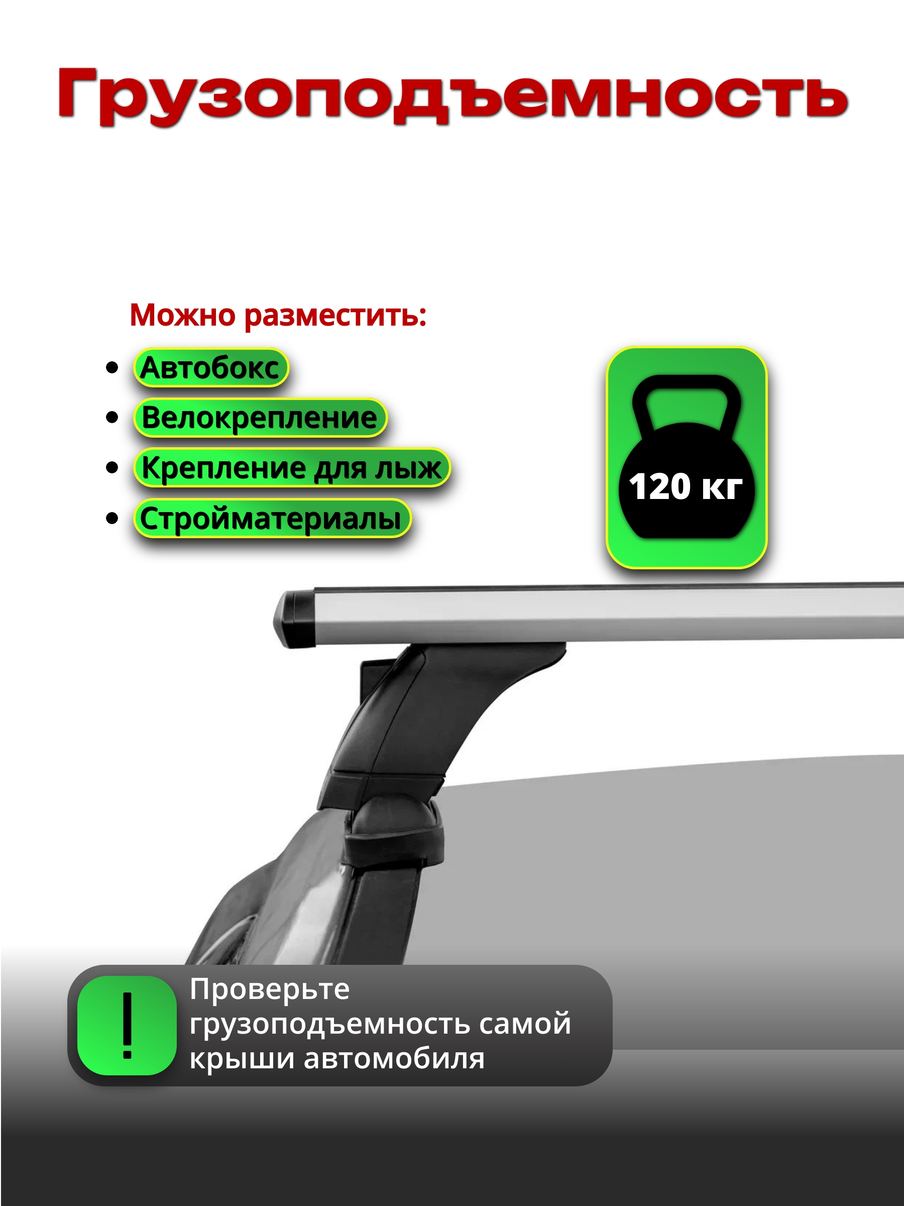 Поперечные перекладины изготовлены из прочного алюминиевого сплава, внутри профиль дуг имеет перемычки для жестки. Опоры прижимаются к крыше через резиновые подкладки, предохраняющие поверхность от механических повреждений при использовании багажника и обеспечивающие идеальное прилегание.