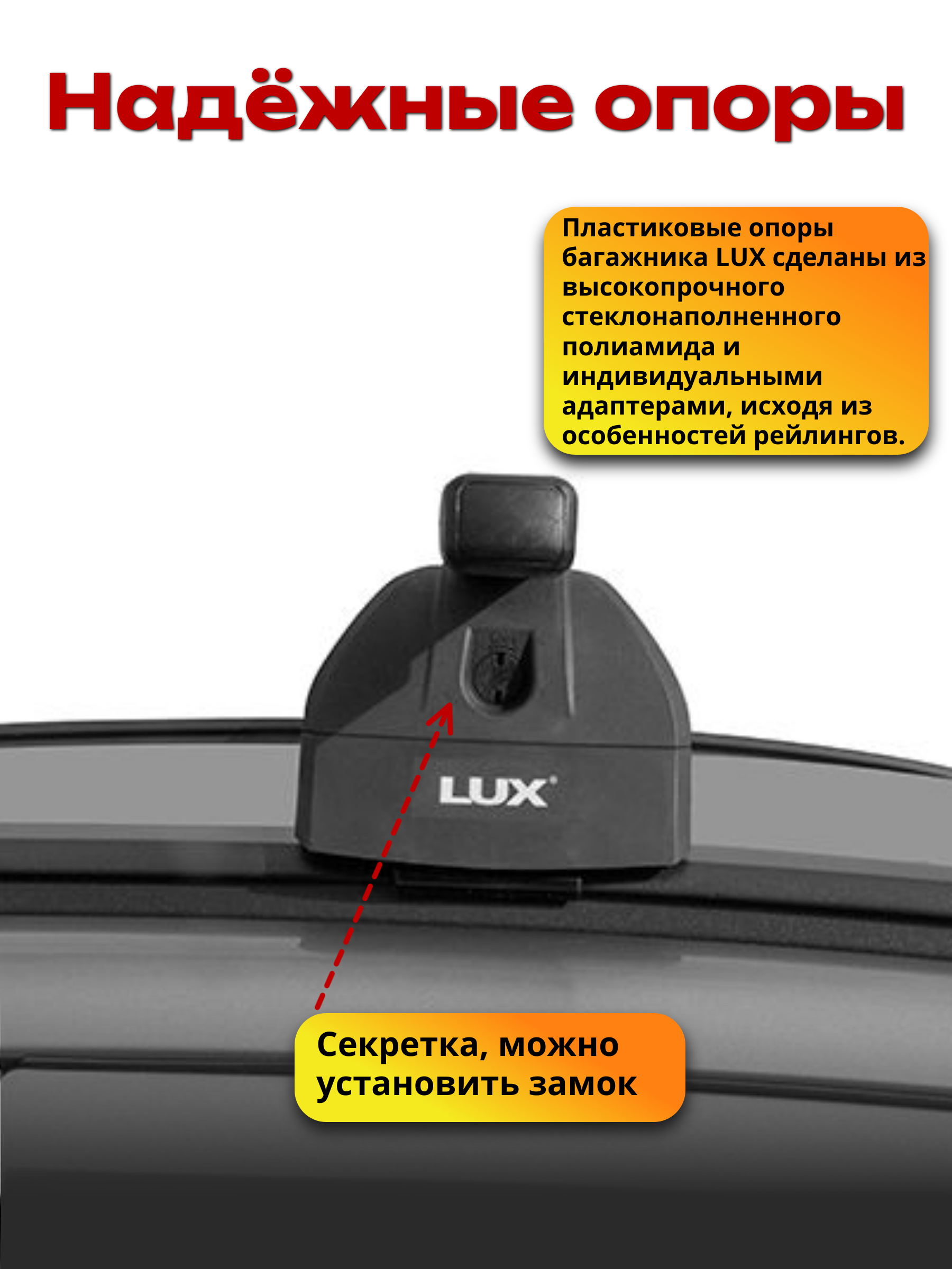 Надежная багажная система LUX (Люкс) хорошо приспособлена для перевозки любых грузов, весом не превышающим разрешенную нагрузку на крышу вашего автомобиля (см. инструкцию к автомобилю) и установки дополнительных автоаксессуаров: автобоксов, креплений для велосипедов и прочих.