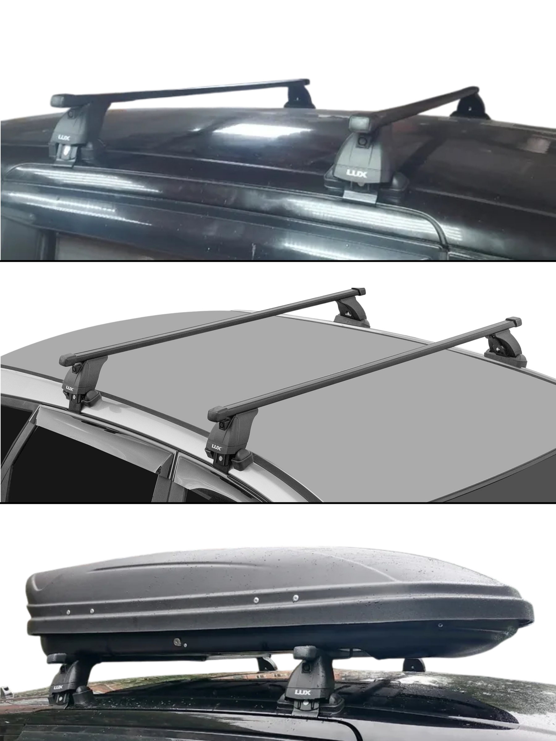 Надежная багажная система LUX (Люкс) хорошо приспособлена для перевозки любых грузов, весом не превышающим разрешенную нагрузку на крышу вашего автомобиля (см. инструкцию к автомобилю) и установки дополнительных автоаксессуаров: автобоксов, креплений для велосипедов и прочих.