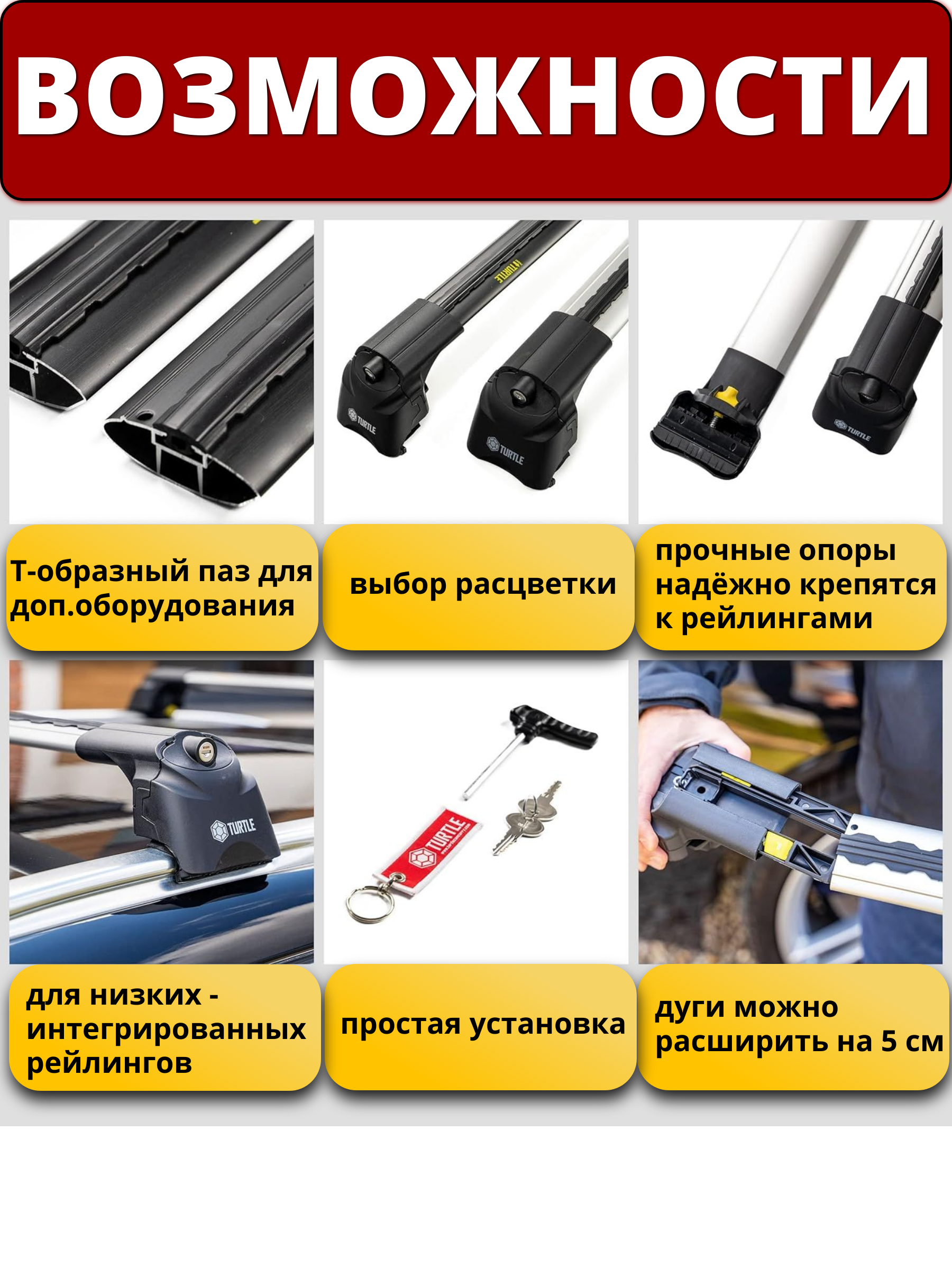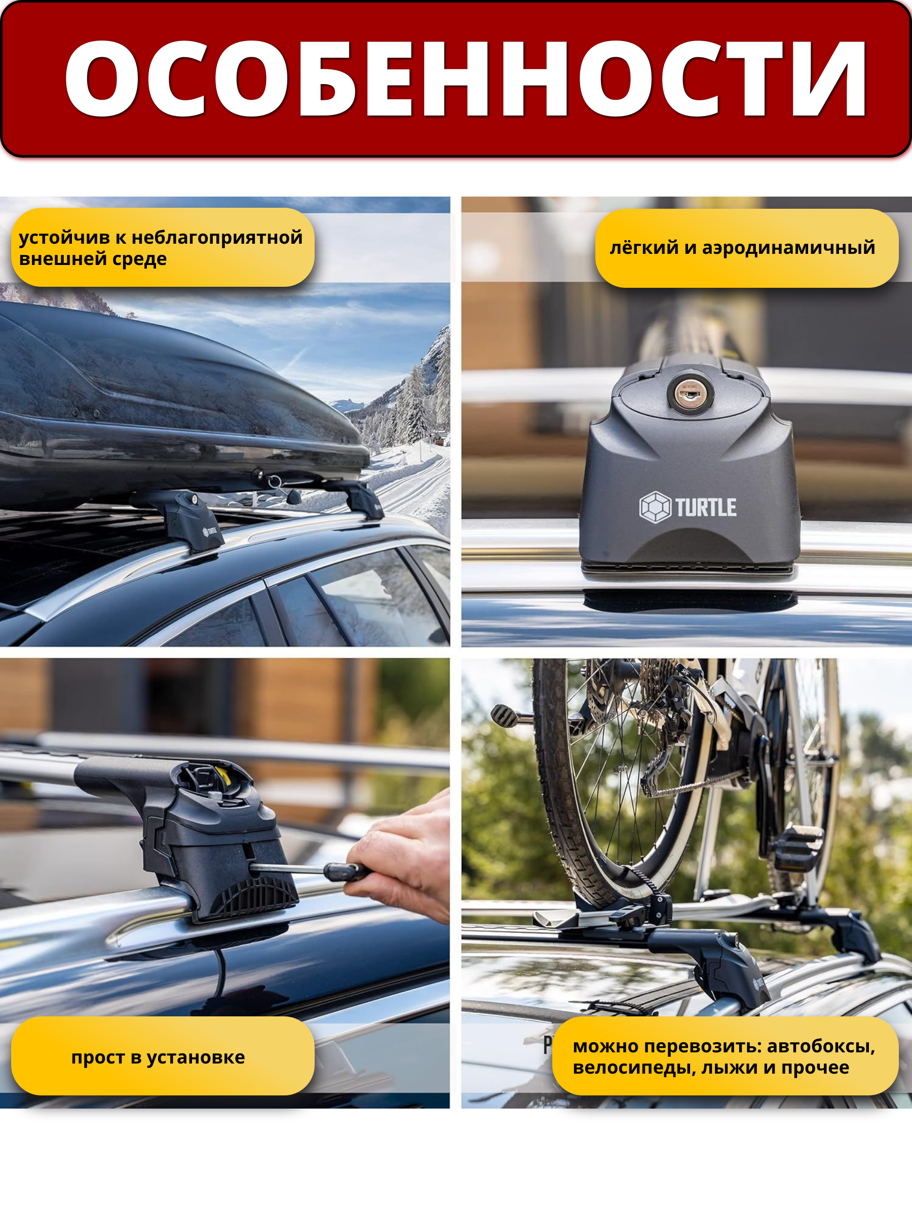 Багажники на крышу Turtle AIR 2 универсальны — подходят для автомобилей с интегрированными рейлингами (без просвета).