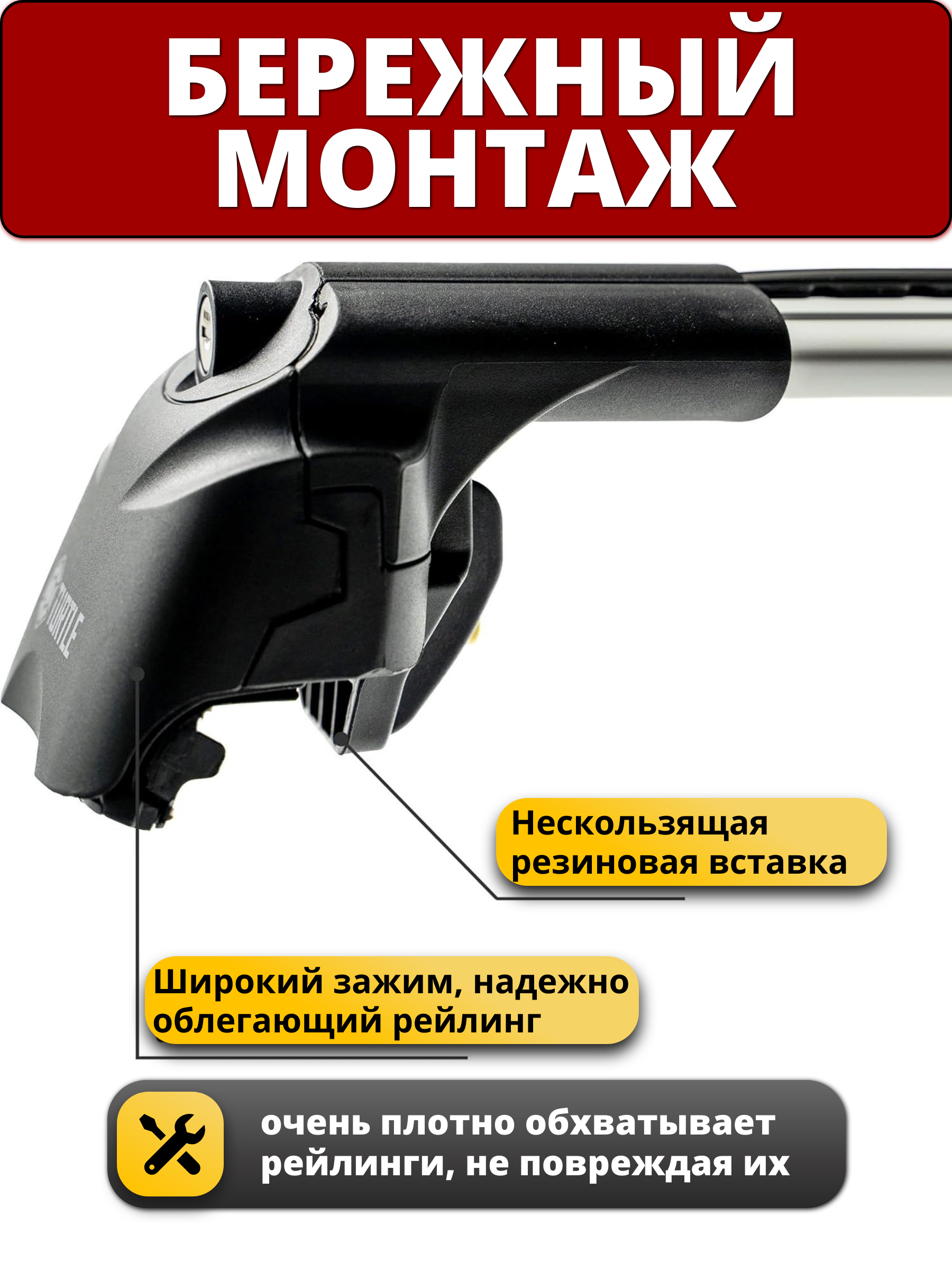 Конструкция багажника Turtle AIR 2 устроена так, что все места соприкосновения поперечины и рейлинга покрыты резиновыми вставками.