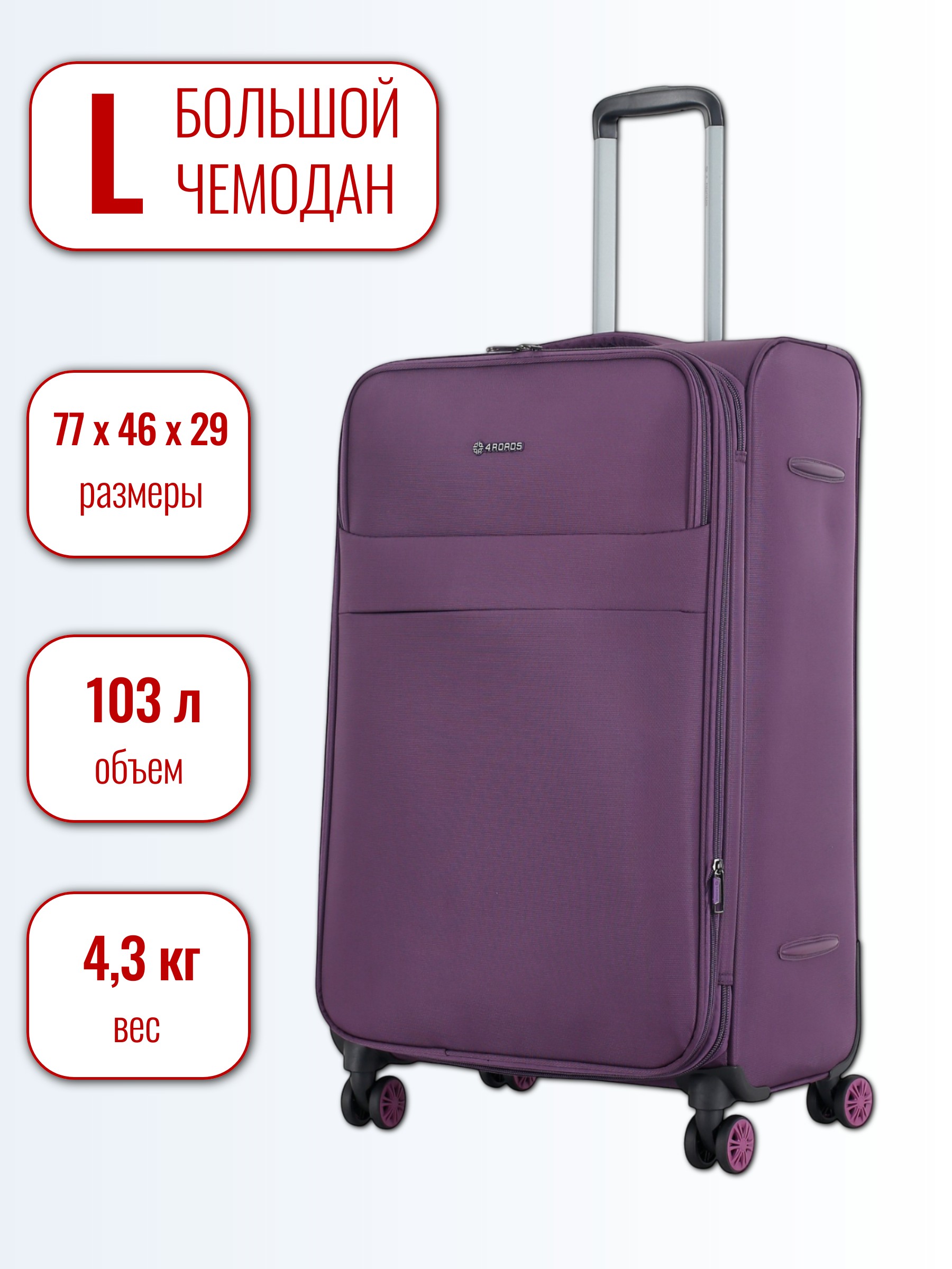 Габариты, см: 77х46х29. Размер: L. 28 дюймов. Вес, кг: 4,3. Объем, л: 103.