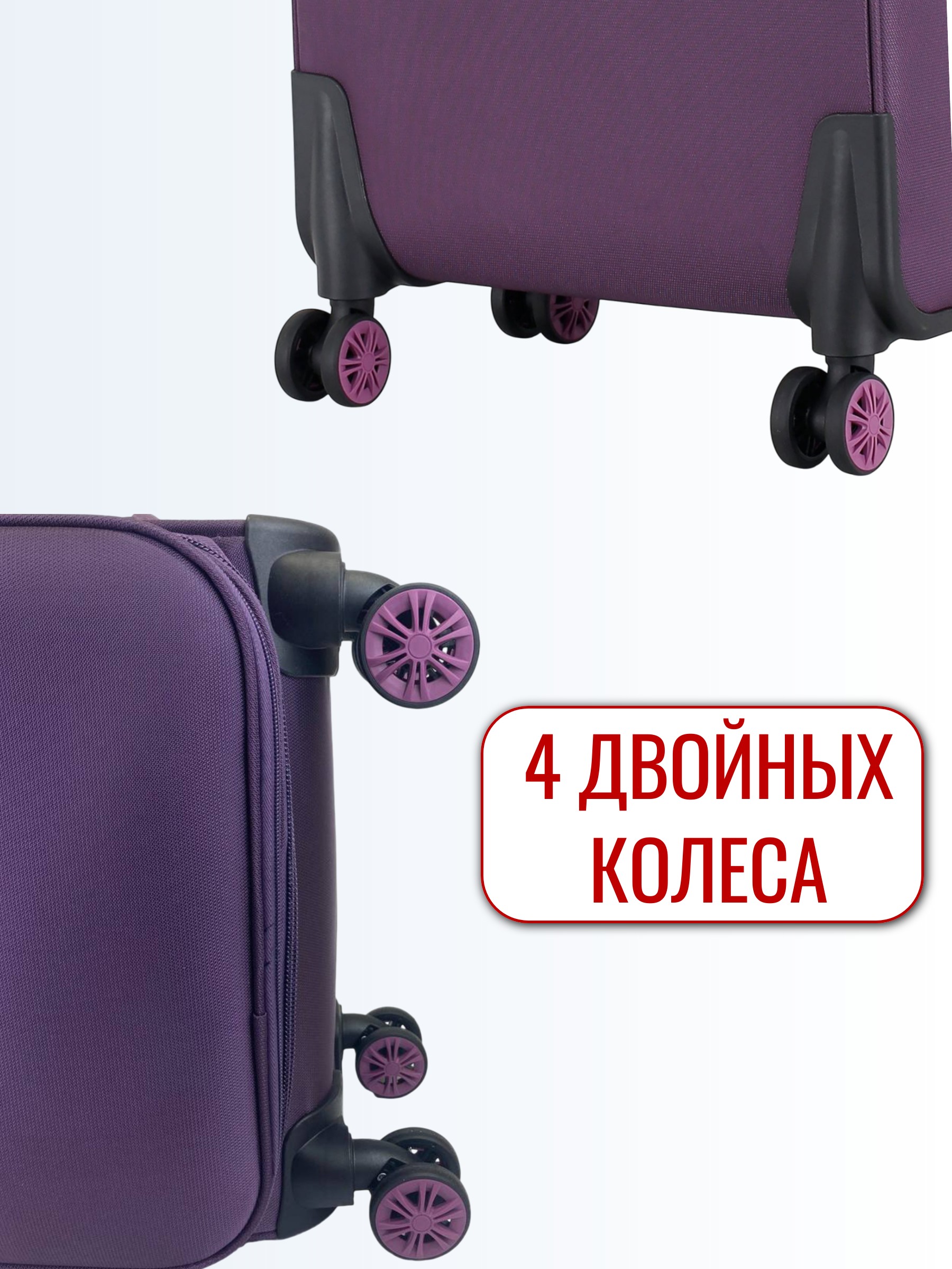У модели сдвоенные колеса , они более долговечные и манёвренные, чем одинарные, с плавным поворотом на 360 градусов. Их удобно катить и выбирать направление движения на ровной поверхности.