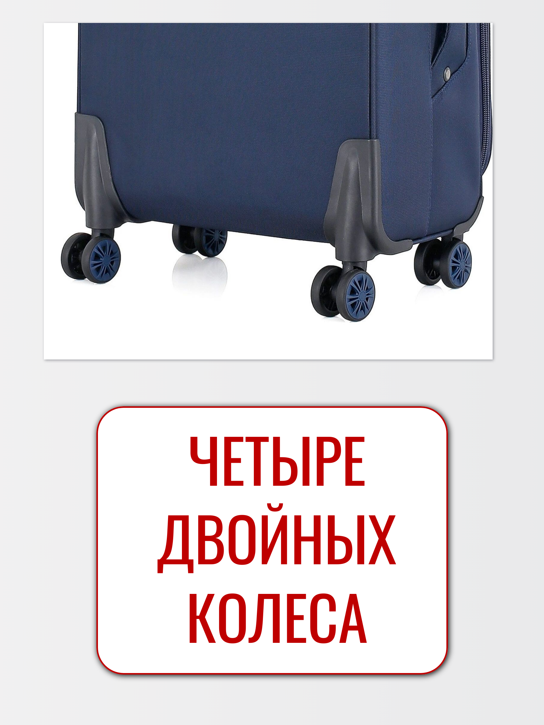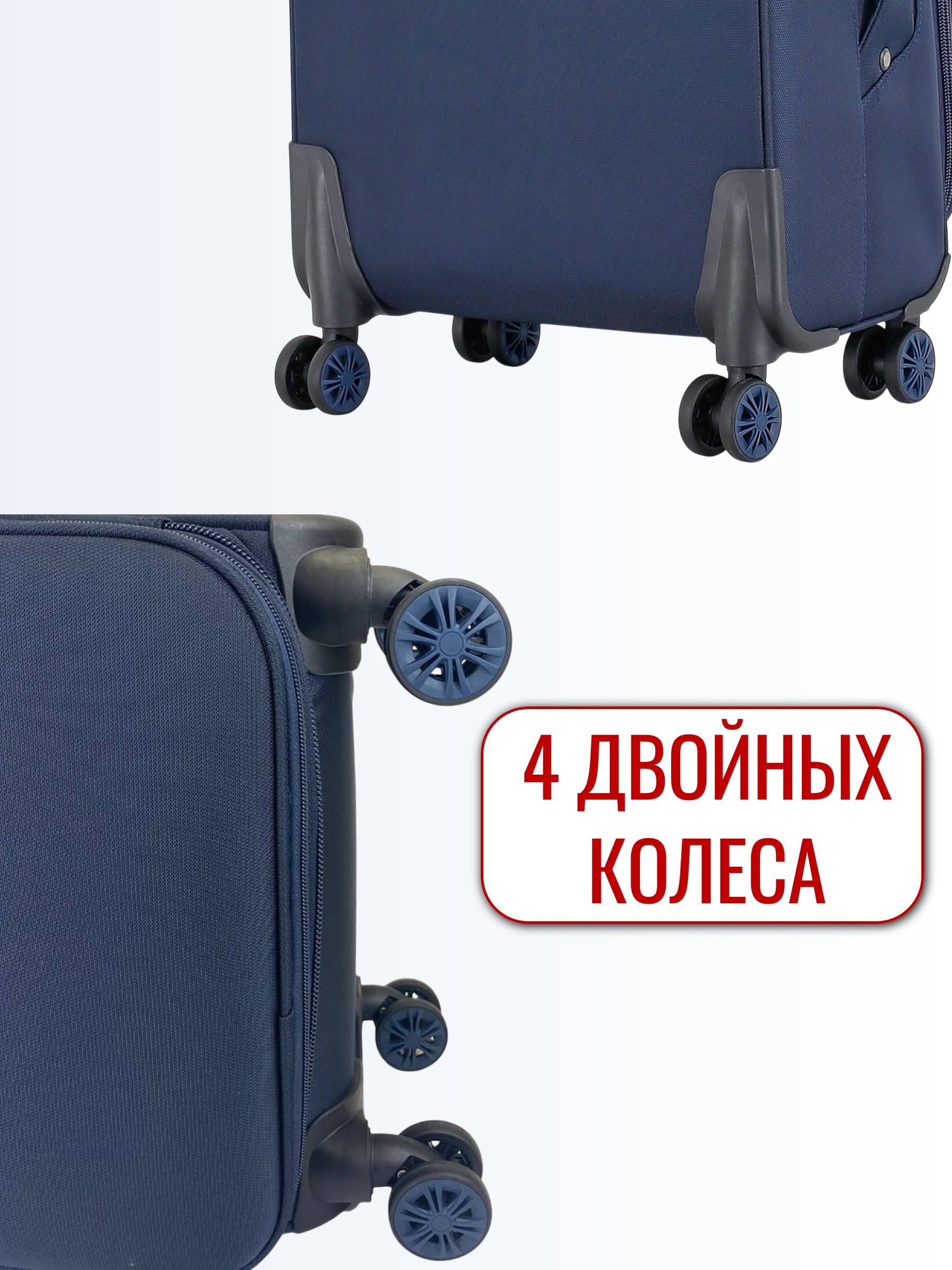 У модели сдвоенные колеса , они более долговечные и манёвренные, чем одинарные, с плавным поворотом на 360 градусов. Их удобно катить и выбирать направление движения на ровной поверхности.