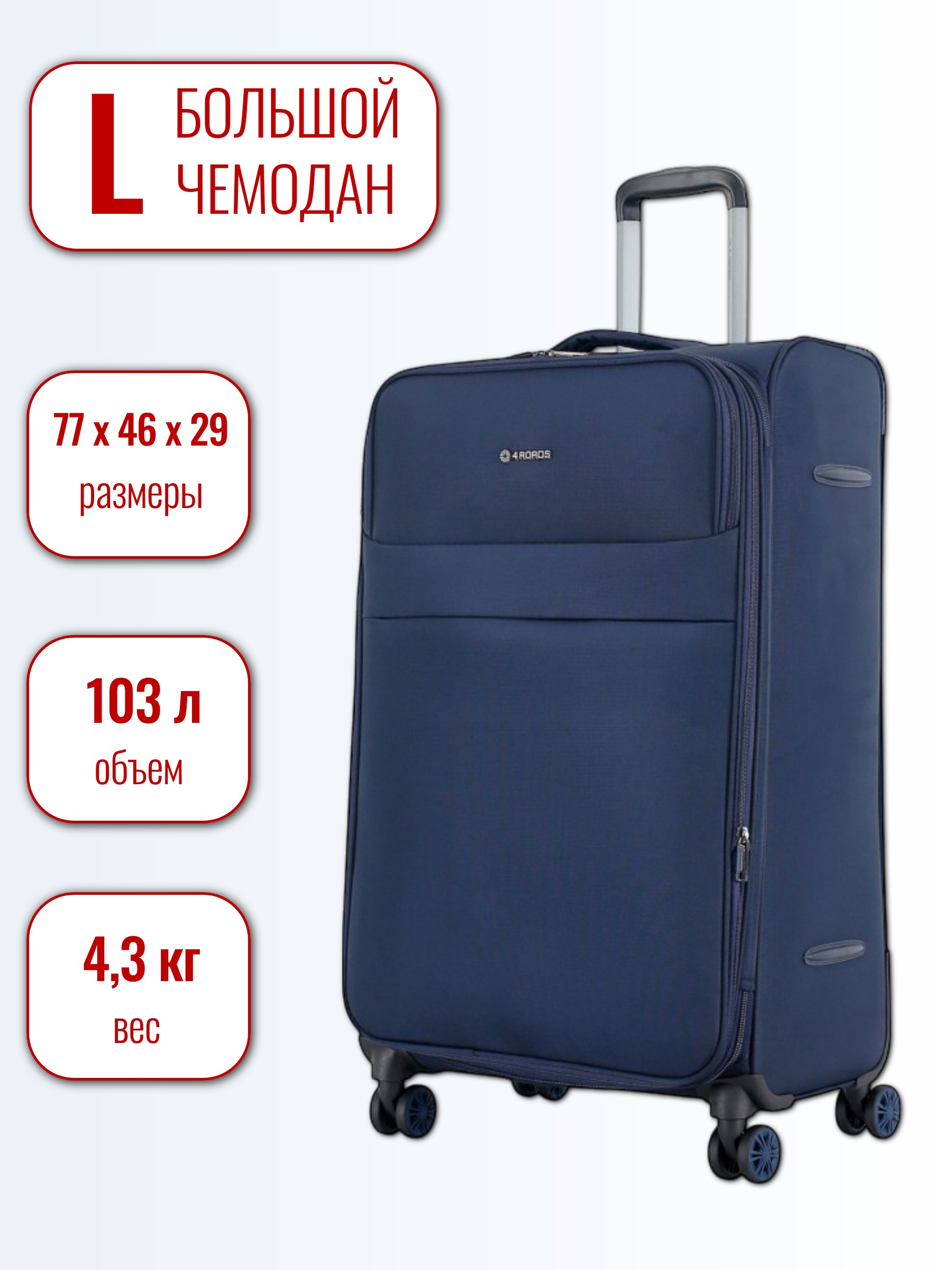 Габариты, см: 77х46х29. Размер: L. 28 дюймов. Вес, кг: 4,3. Объем, л: 103.