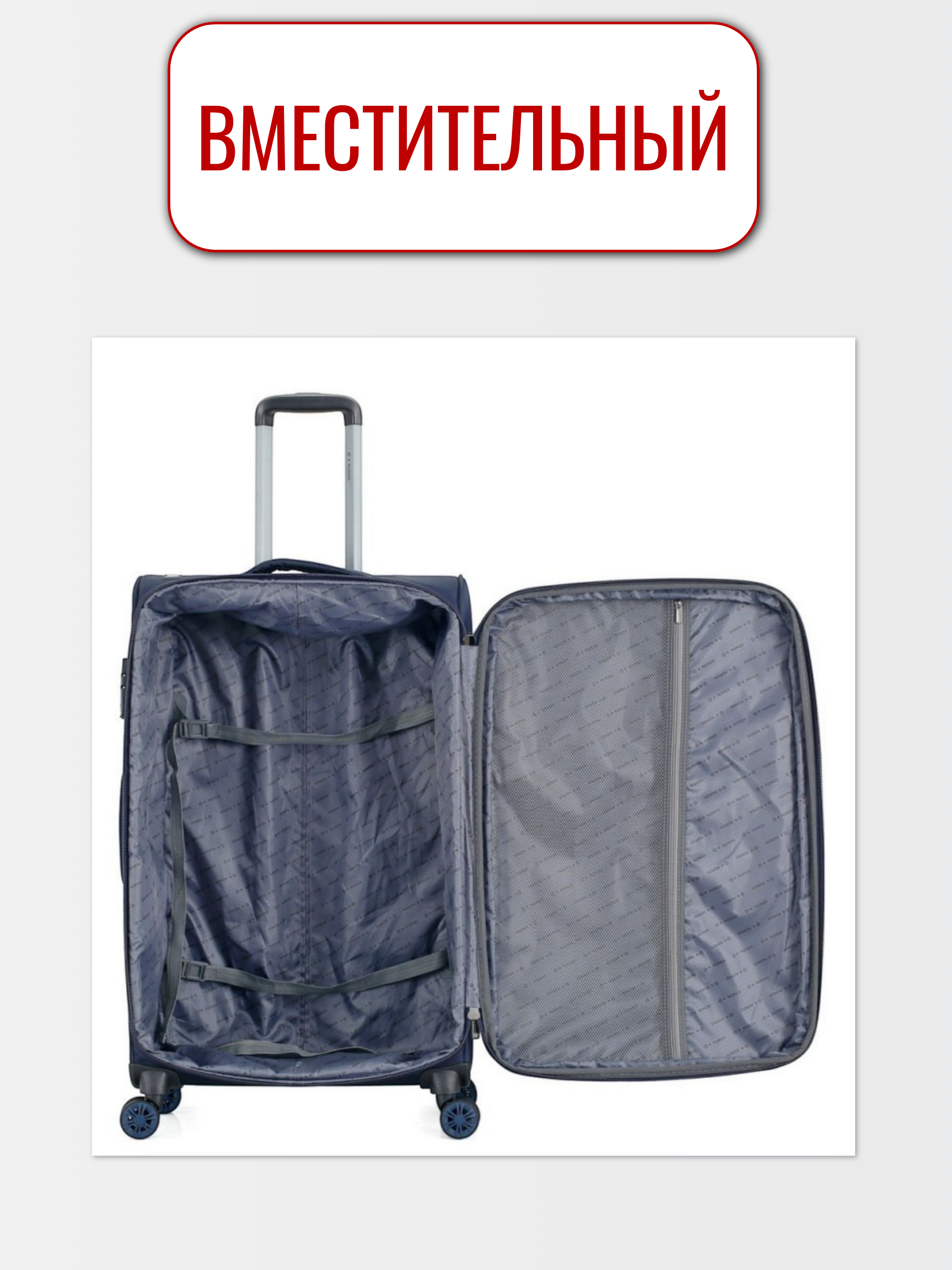 Есть функция увеличения объем чемодана на 15%.