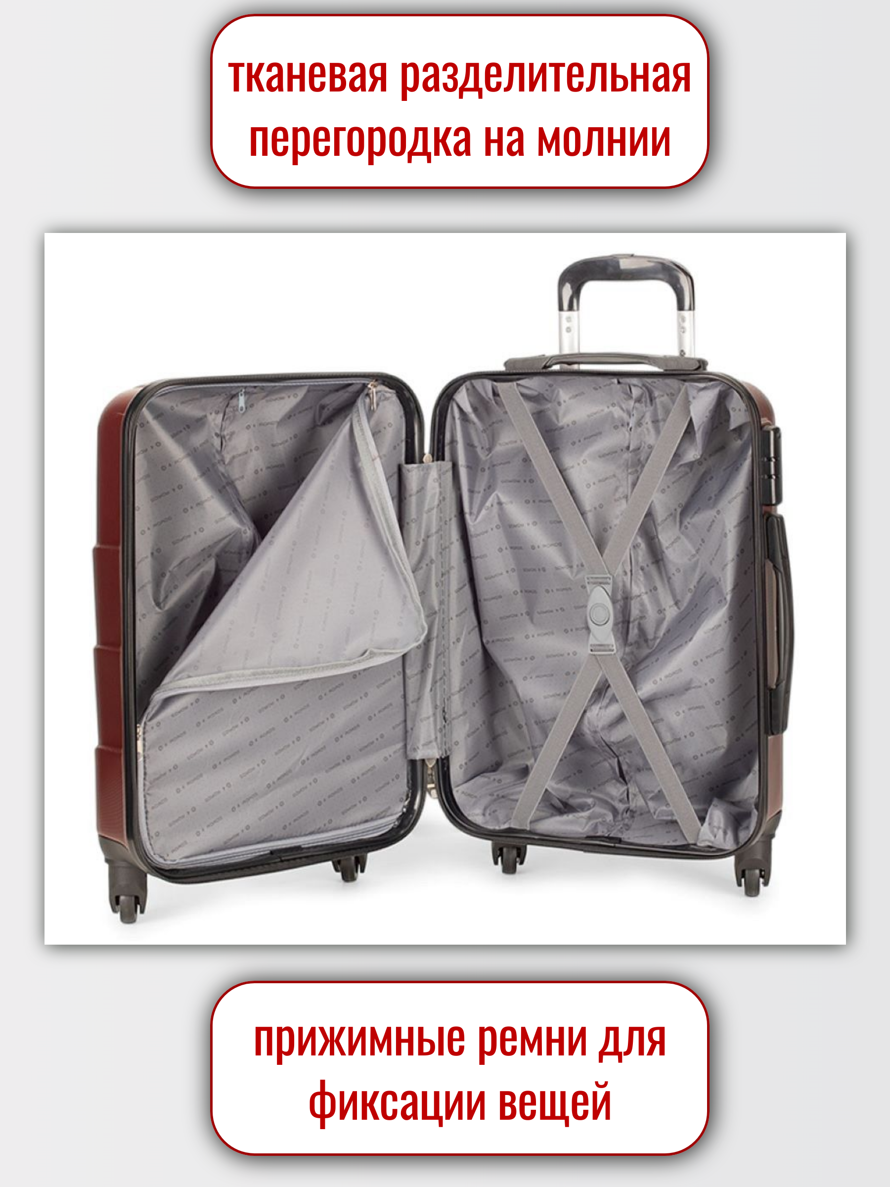 Внутри чемодана имеется тканевая разделительная перегородка на молнии.