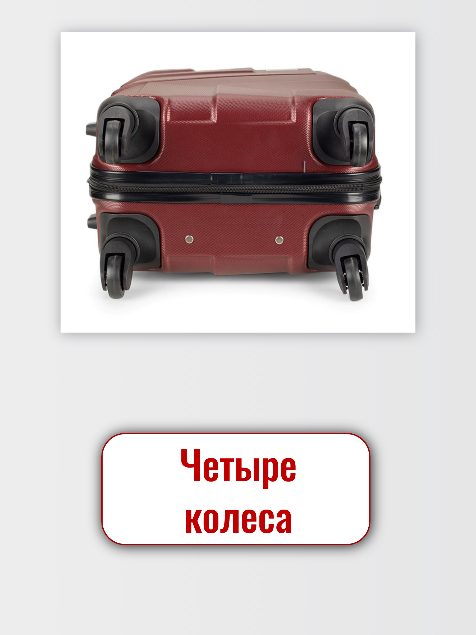 Колеса с подшипниками обеспечивают комфортное передвижение чемодана на любой поверхности. Они изготовлены из долговечной резины устойчивой к истиранию.