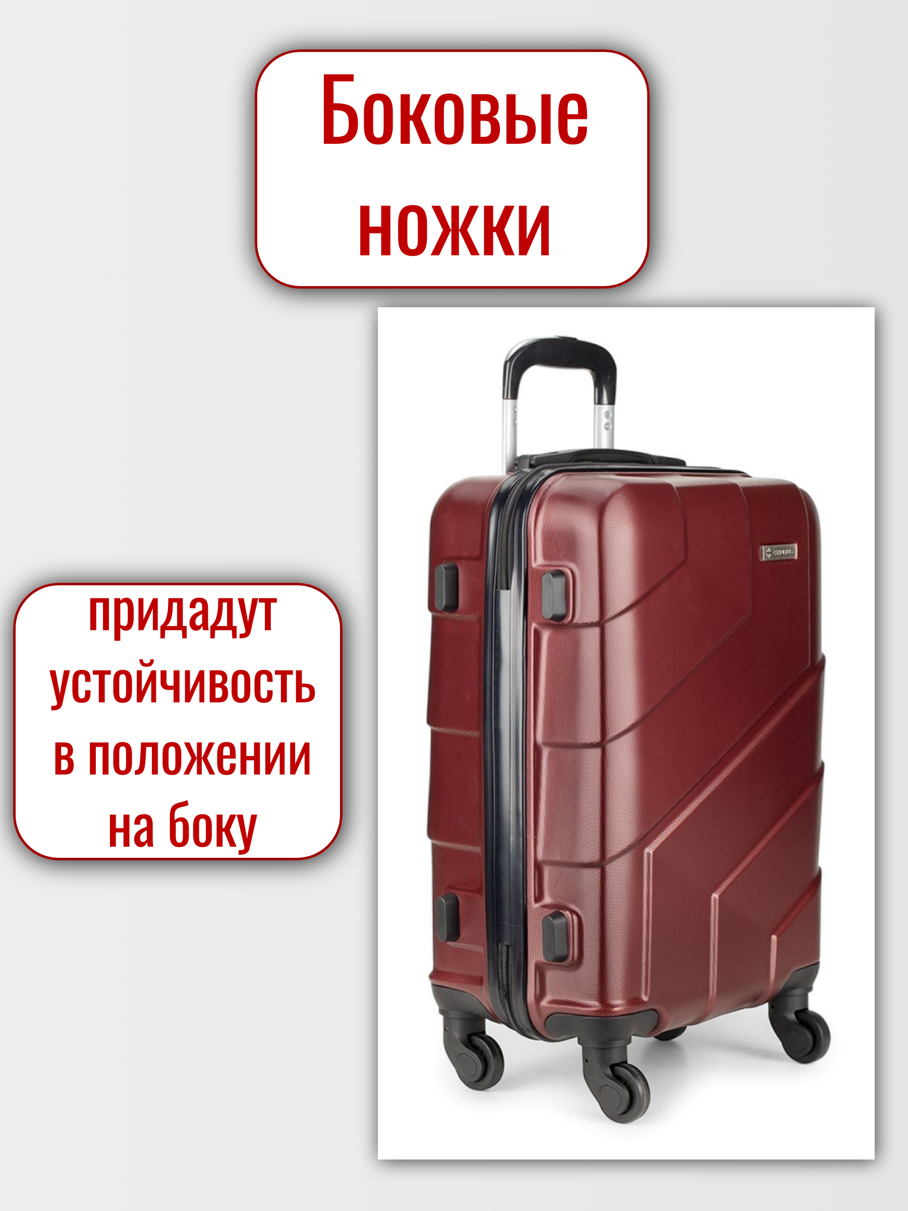 Пукли, расположенные на боковой стороне чемодана защищают его от протирания и загрязнения при горизонтальной транспортировке.