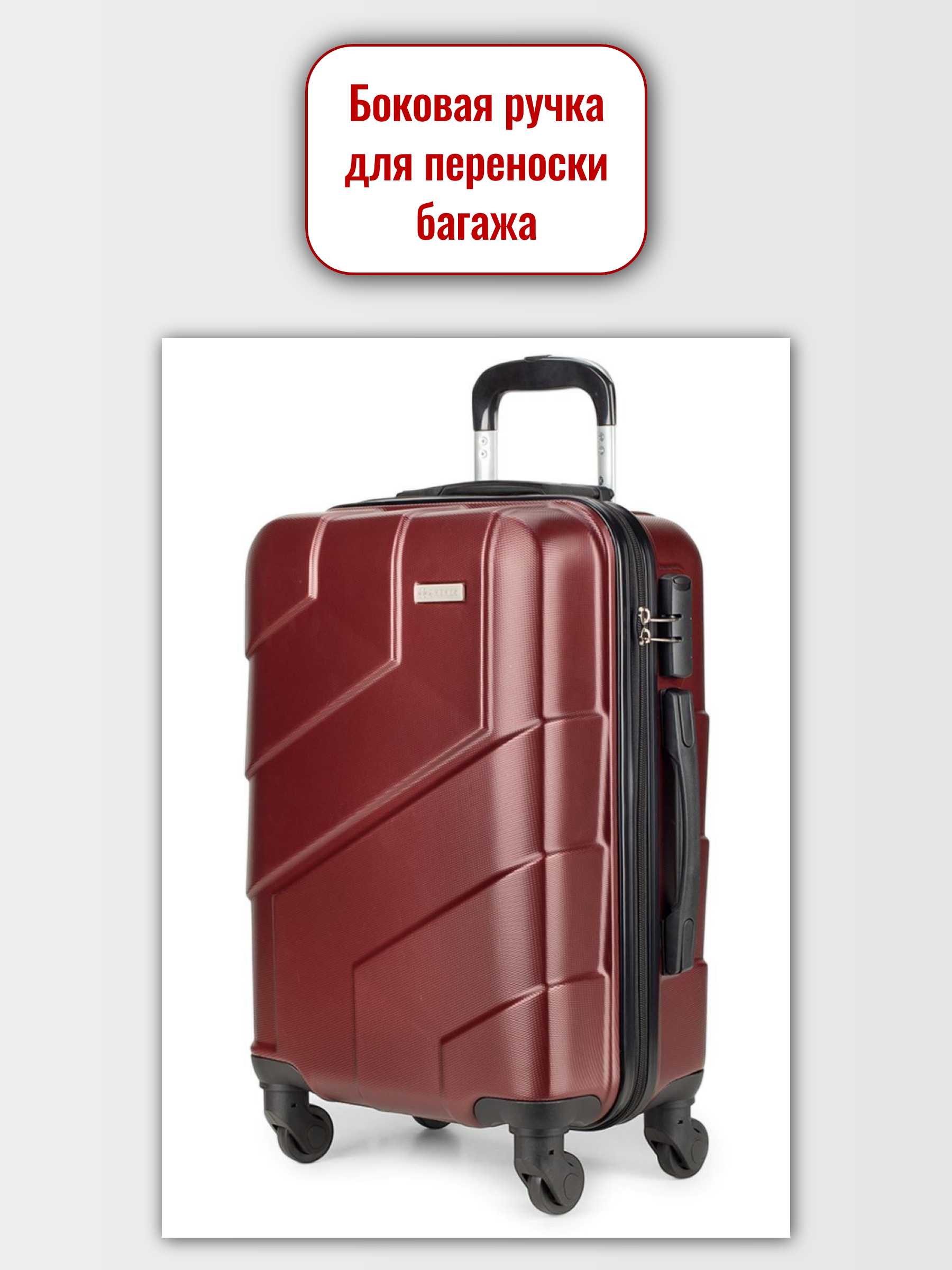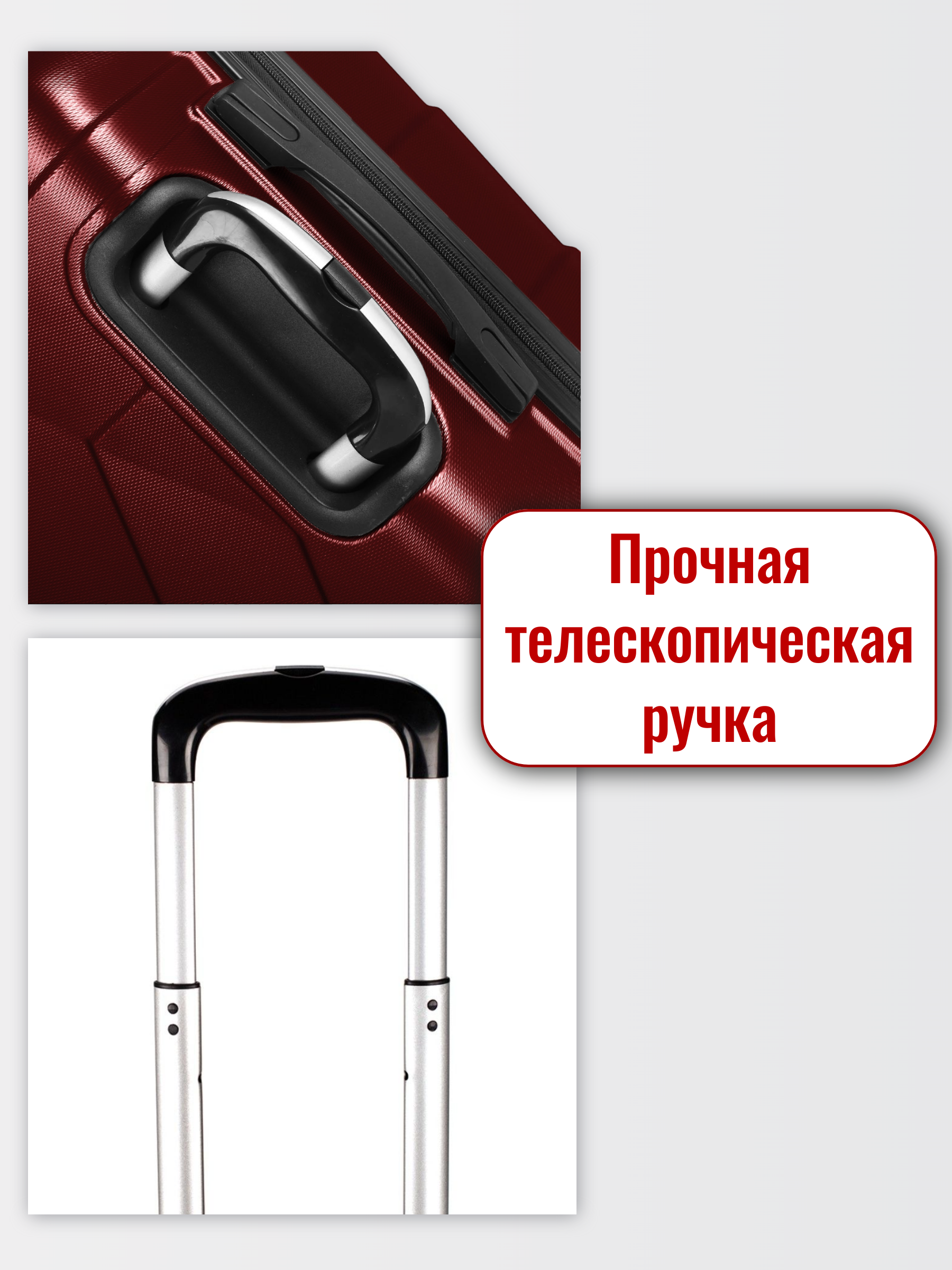 Удобная ручка из прочного пластика имеет специальную гелевую вставку для равномерного распределения веса и комфортной переноски чемодана.