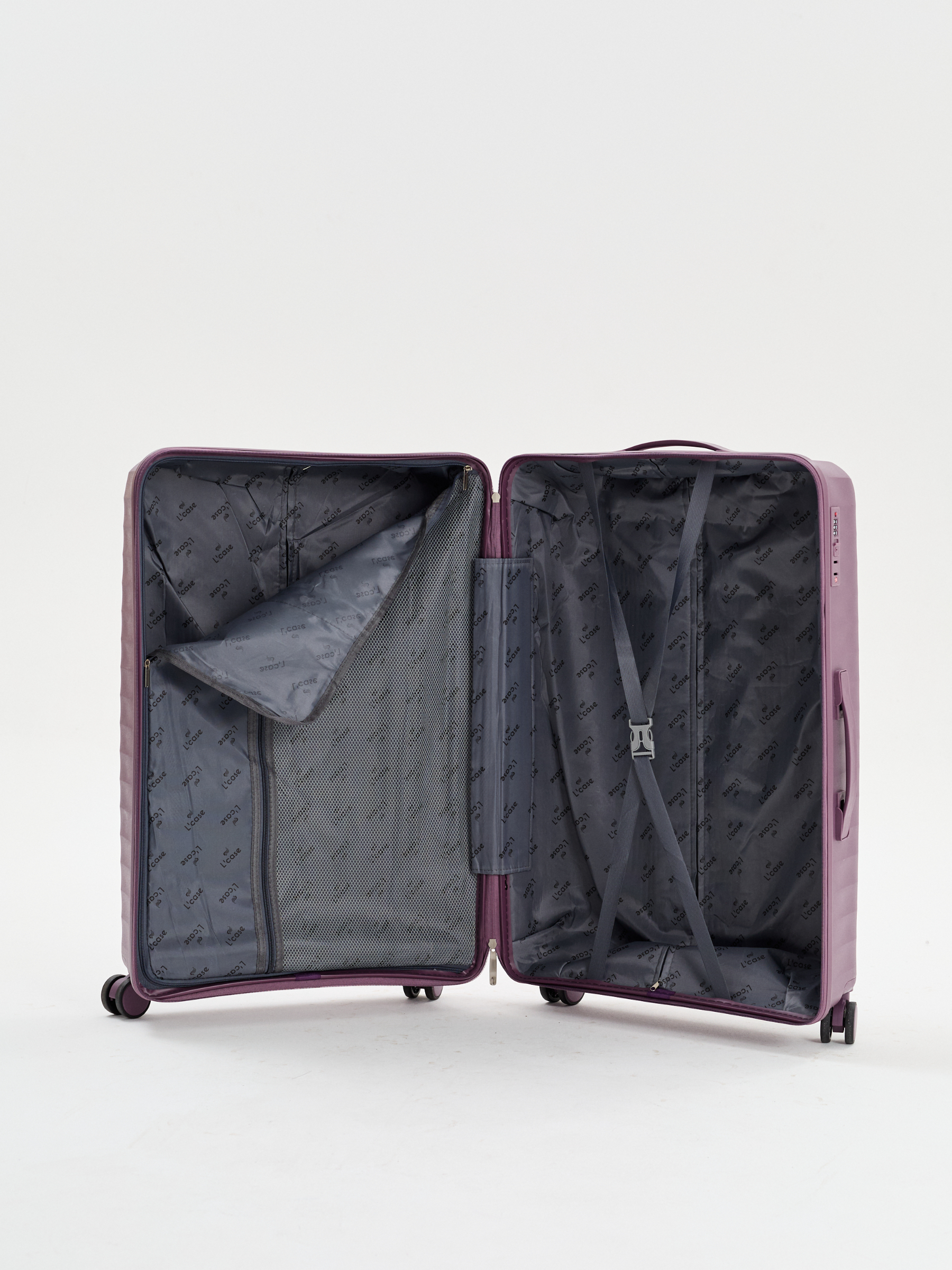 Чемодан Cancun от L’case выполнен из прочного полипропилена, который отличается легкостью и устойчивостью к механическим повреждениям.