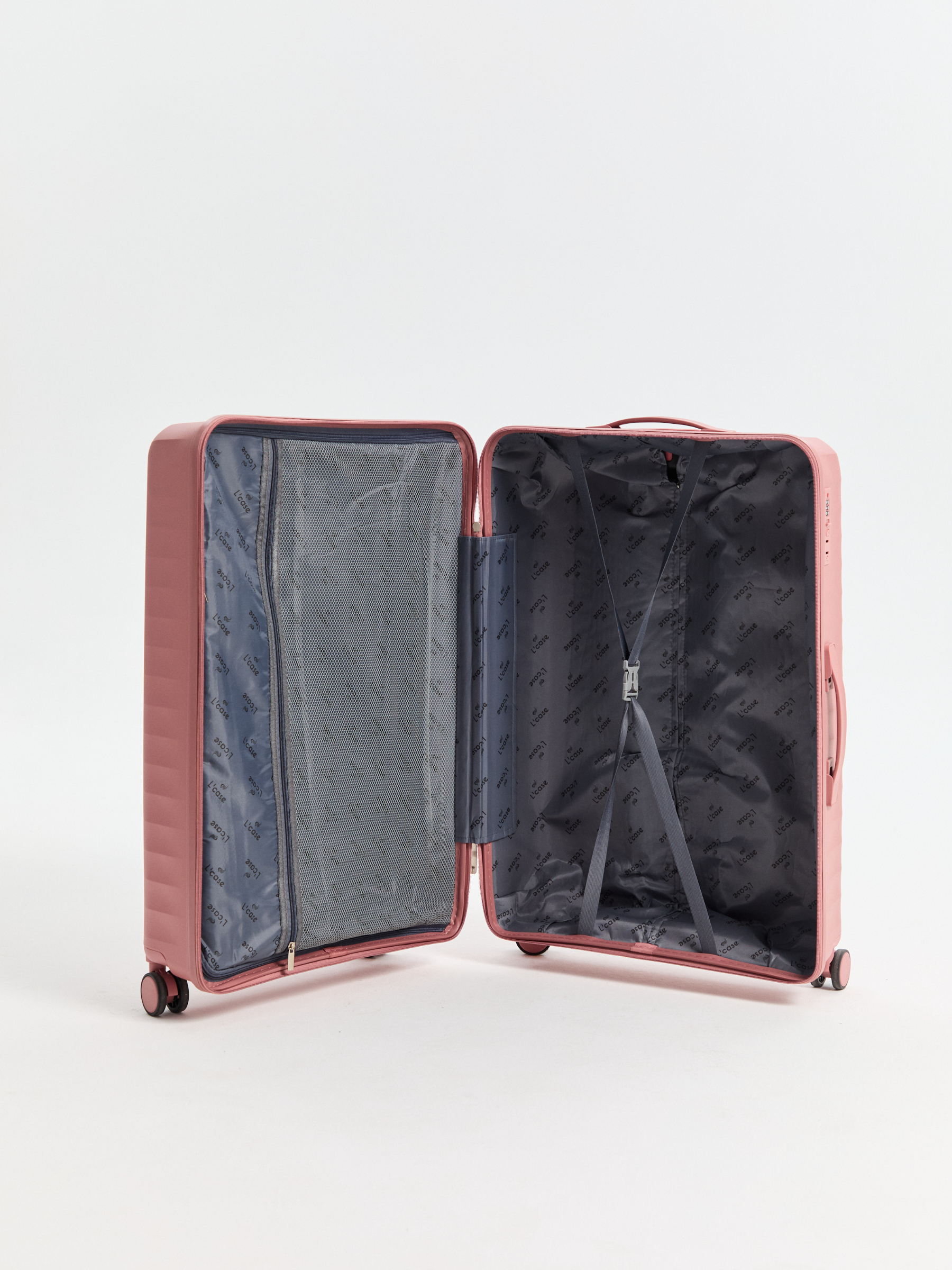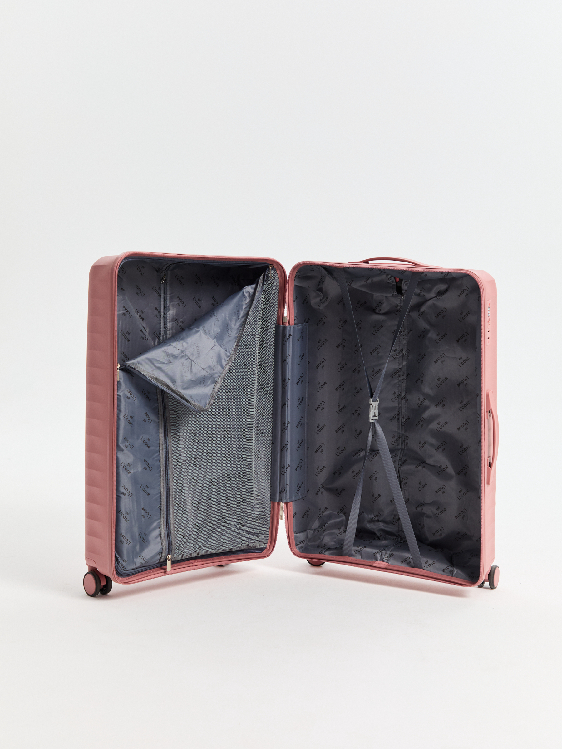 Чемодан Cancun от L’case выполнен из прочного полипропилена, который отличается легкостью и устойчивостью к механическим повреждениям.