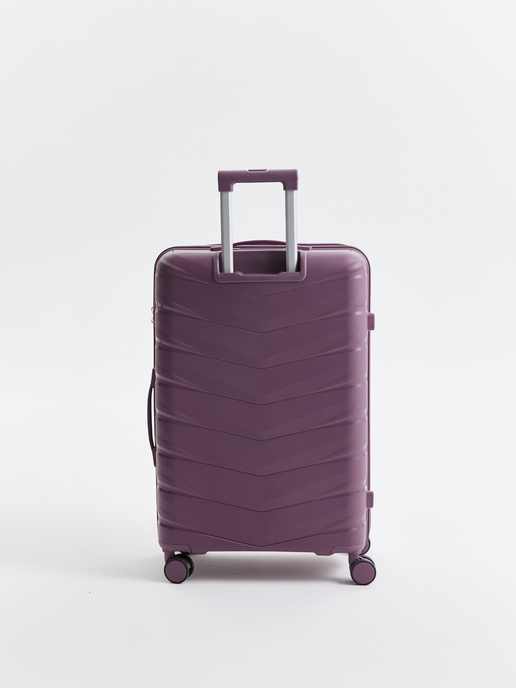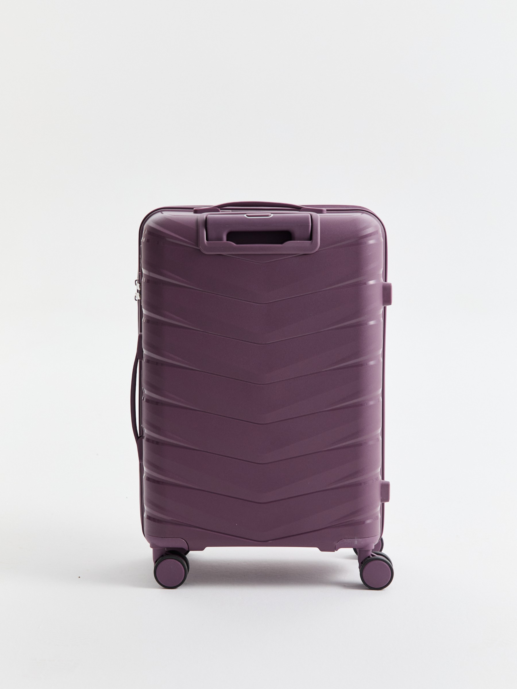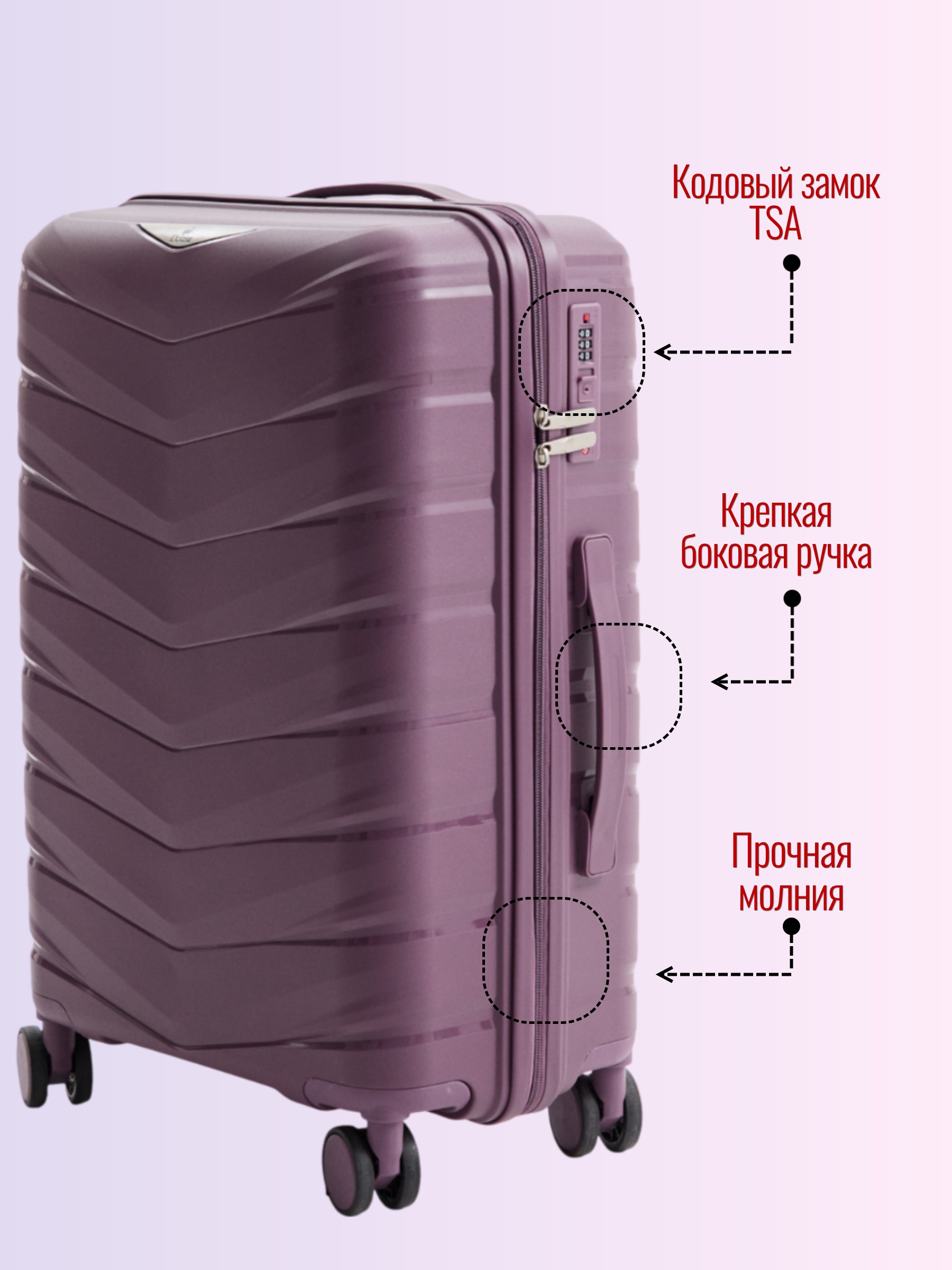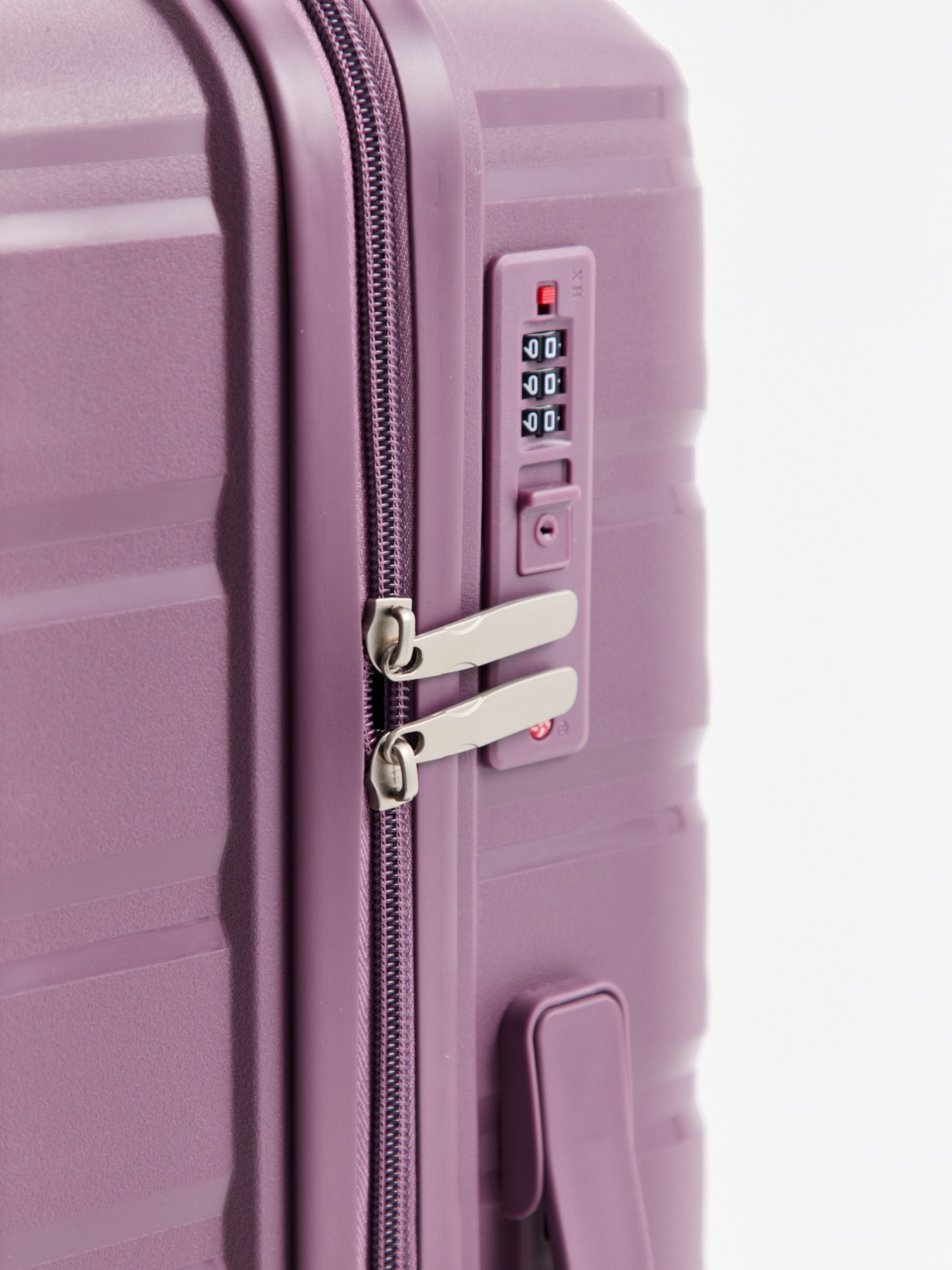 Выдвижная ручка с несколькими уровнями регулировки позволяет удобно переносить чемодан, а кодовый замок защищает содержимое от несанкционированного доступа.