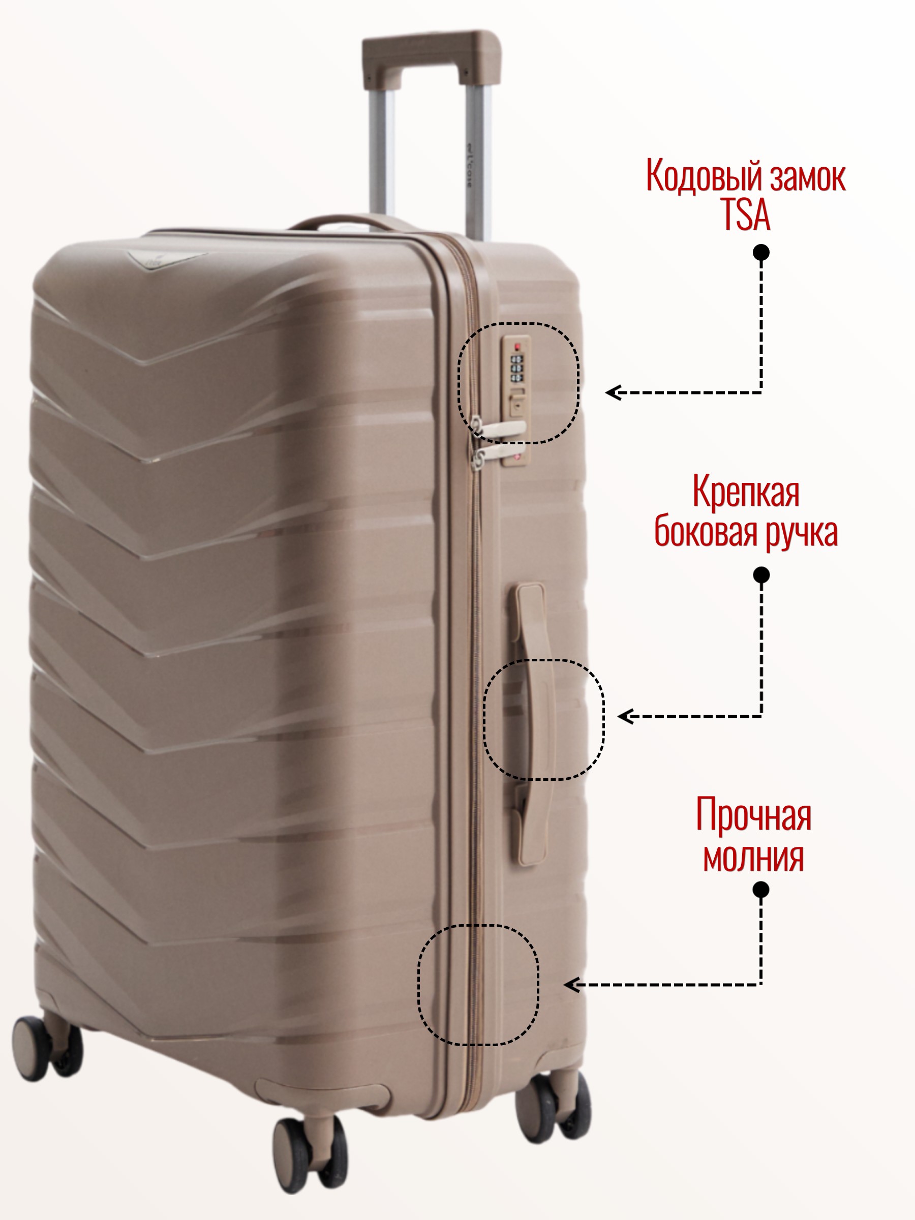 Чемодан Valencia от L’case выполнен из прочного полипропилена, который отличается легкостью и устойчивостью к механическим повреждениям.