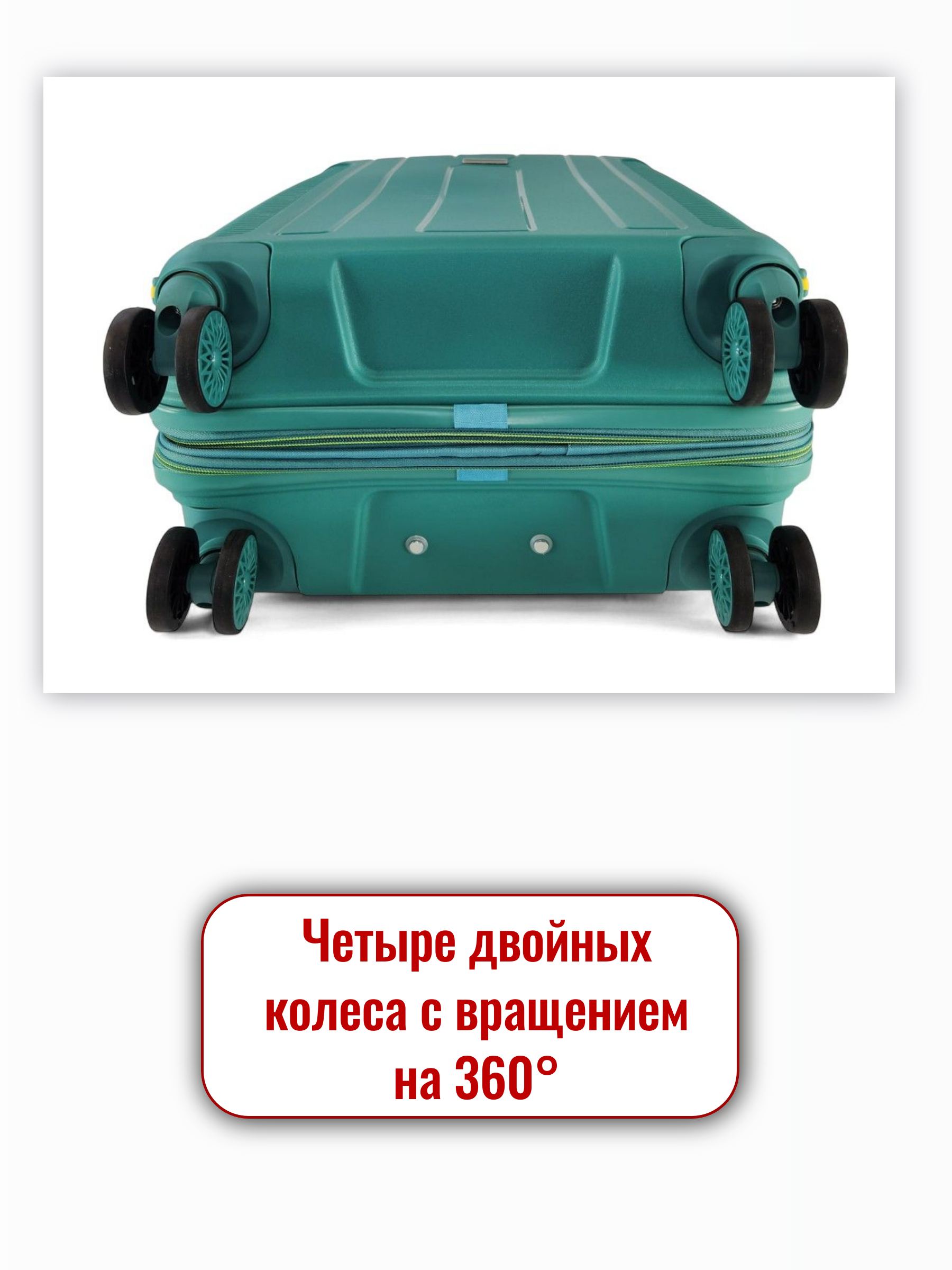 4 двойных съёмных колеса вращаются на 360°, позволяя чемодану двигаться легко и плавно.